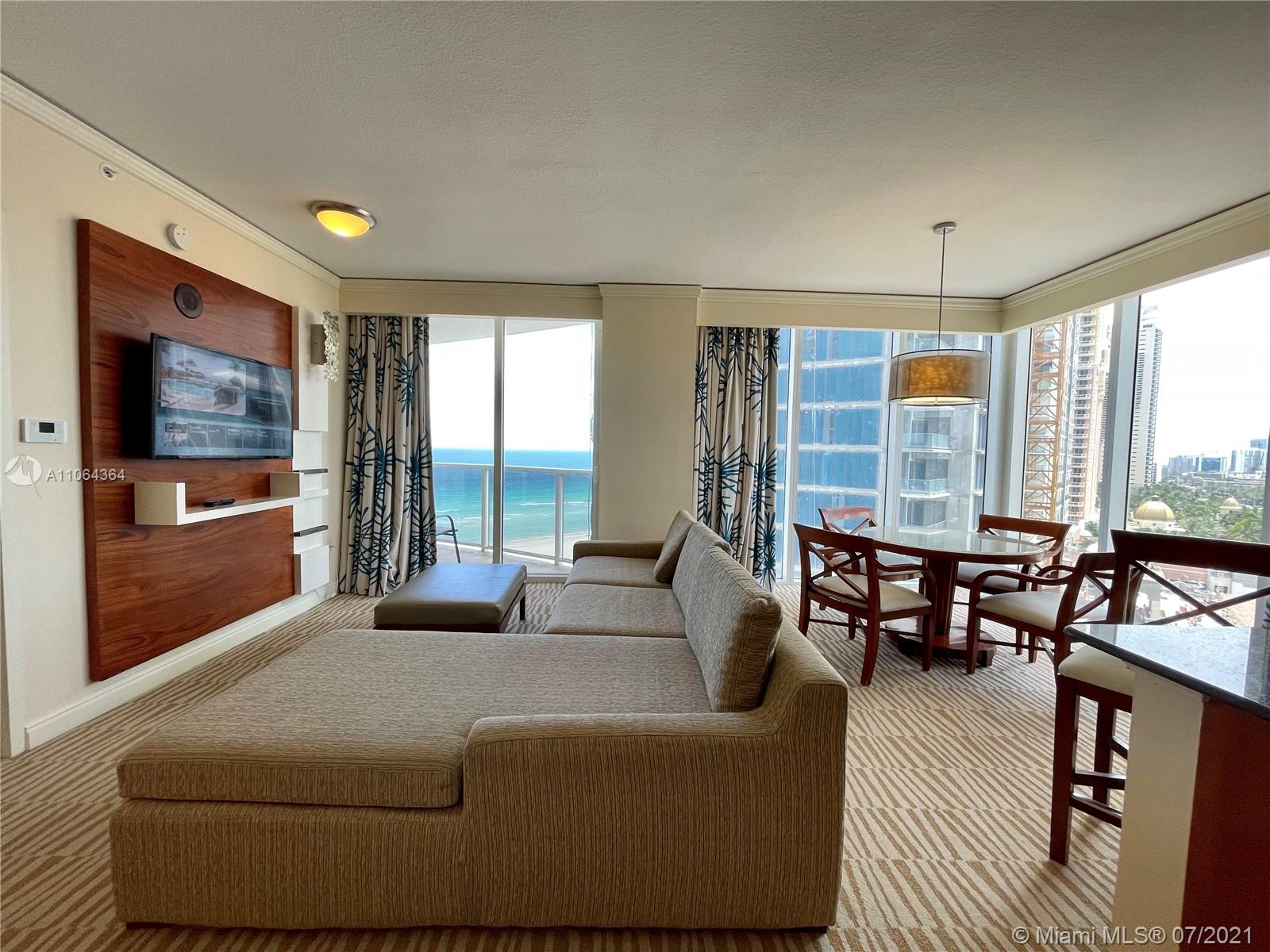 OWN TWO ADJOINING OCEANFRONT SPECTACULAR UNITS IN 5 STAR CONDO HOTEL ON SUNNY ISLES BEACH! GREAT INVESTMENT OPPORTUNITY! BEAUTIFULLY FURNISHED W/1478 TOTAL SF ON THE OCEAN! ONE OF A KIND, 2 BED 2.5 BTHS (COMBINED)FEATURES OCEAN VIEWS FROM LIVING AREA & LUXURIOUS MASTER SUITE, MARBLE BATHS, SITTING AREA/OFFICE IN LUXURIOUS OVERSIZED MASTER SUITE, SPACIOUS GREAT ROOM PERFECT FOR ENTERTAINING W/FULL KITCHEN, WASHER/DRYER, ½ BATH. ADJOINING ROOM IS VERY LARGE W/MARBLE BATHROOM, BAR, MINI FRIDGE. FANTASTIC RENTAL PROGRAM ON-SITE TO USE WHEN VACANT TO OFFSET COSTS. USE ONE AND RENT THE OTHER OR USE BOTH! GREAT FOR FAMILIES AND/OR BUSINESS ENTERTAINING & MEETINGS. AMENITIES: BEAUTIFUL PRIVATE BEACH CLUB, CABANA, RESORT POOL, 4 RESTAURANTS, WORLD CLASS SPA, KIDS PROGRAM, TENNIS, VALET, & MORE!