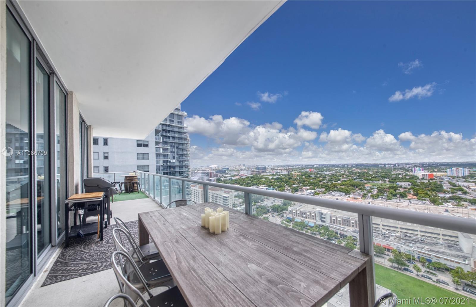 Stunning 2bd/2ba corner unit with breathtaking City & Bay views in prestigious Midtown Miami. Open floor plan, large wrap around terrace for entertaining, granite kitchen, new floors, stainless steel appliances. 10 foot ceilings, full size washer-dryer, floor to ceiling impact glass sliders, fully upgraded bathrooms & much more. 24HR security, Concierge, Fitness Center, Towel Service at the Pool, Sauna, Jacuzzi tub, Outdoor Kids Playground. Midtown Miami offers many local shops, cafes, & restaurants. NOTE: Tenant occupied until January 2022.