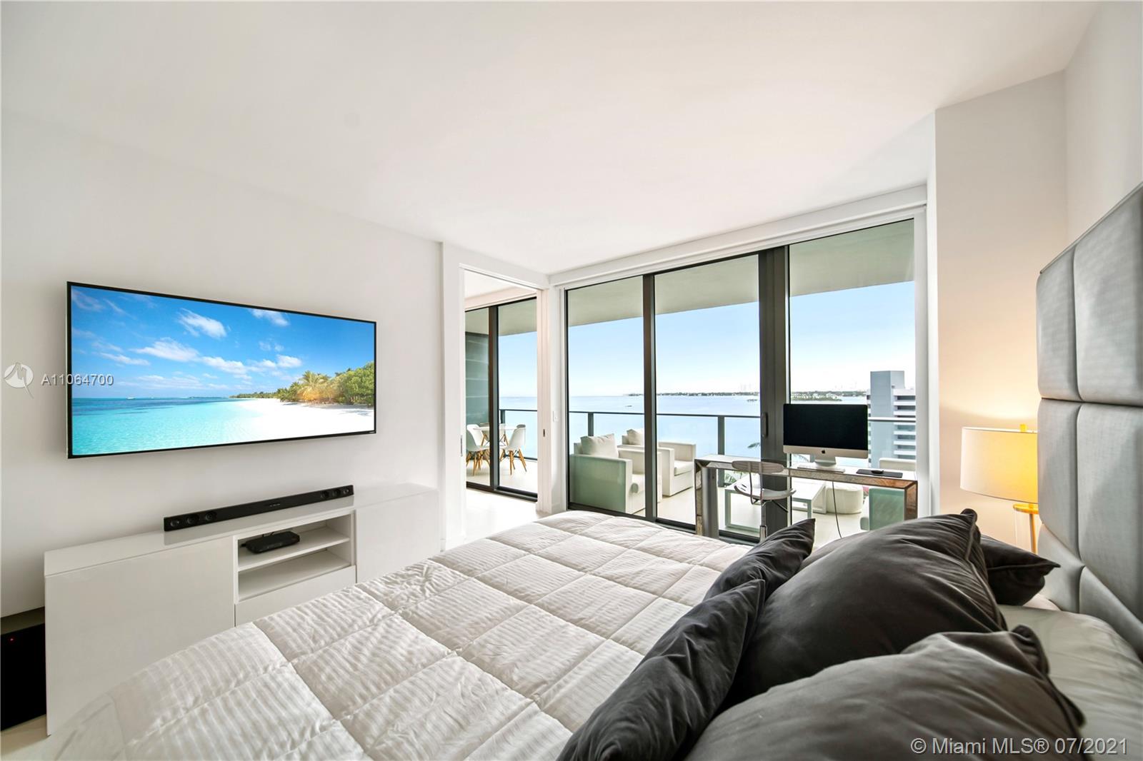 Luxurious upgraded condo w/ direct Bay views. 2 bed/3 baths +Den. Private elevator opens to unit. Foyer and living room walls covered with fine Italian wallpaper, Kitchen countertops and backsplash enhanced with luxurious Natural Stone Statuary Marble, which falls into waterfalls on all sides. Custom pantry furniture perfectly flushed to kitchen cabinets with elegant height mirror doors. Italian porcelain floors, from renowned Pininfarina Italian firm, throughout the condo including the spacious terrace, Custom walking closets, Motorized Window treatments w/blackouts and side channels. Beautiful lighting fixtures and spots throughout the unit. 1 parking & Valet for 2nd car. Gym, Spa, 2 tennis courts,Mini Golf,Wine Cellar,Cigar Lounge,Cinema,Children Lounge, bowling, Amara Restaurant & more