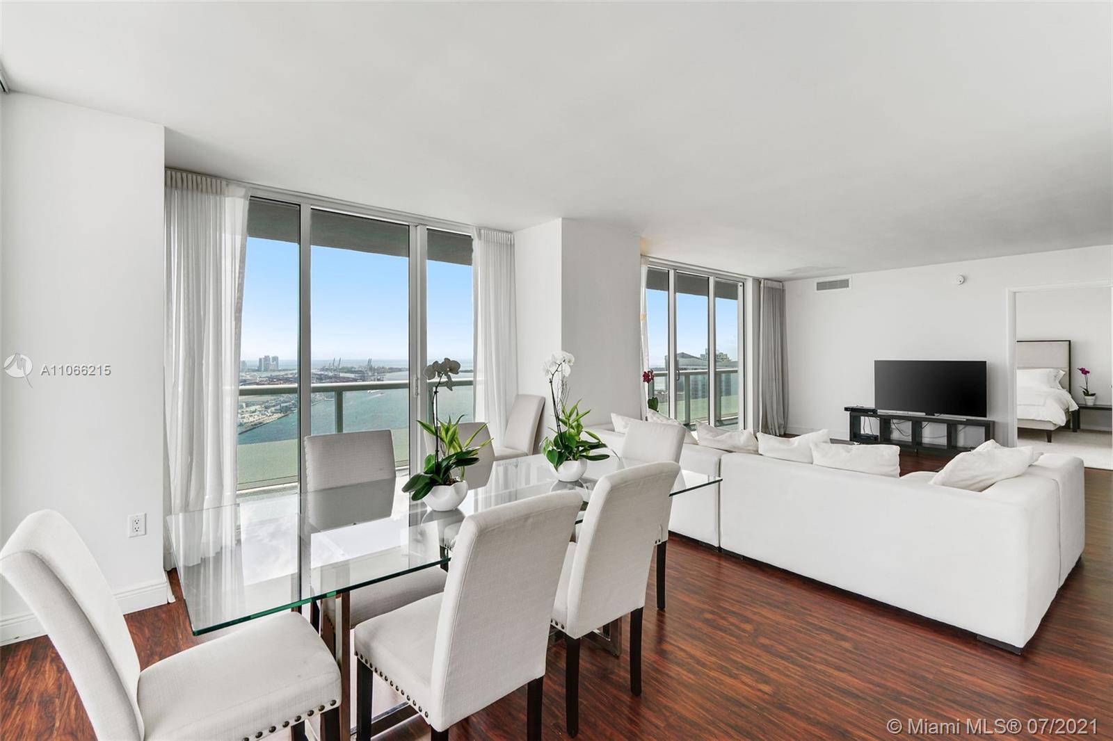 Absolutely stunning panoramic views from this spacious 3 bed, 2 bath corner w/wrap around glass balcony, located in one of Miami’s finest condominiums. Floor to ceiling impact windows-views from every room,-overlooking the ocean, bay & Bayfront Park providing an abundance of natural light throughout the unit. Italian kitchen, granite countertops, marble bathrooms including large master w/separate whirlpool tub and glass shower & dual sinks, great closets including 4 walk-ins, & washer/dryer. Amenities include 24-hour doorman and concierge, state-of-the-art fitness center, valet parking, heated pool w/cabanas & jacuzzi, meditation room, spa, sauna & more. Great location- walking distance to shops, restaurants, arena, preforming arts center & Brickell.
