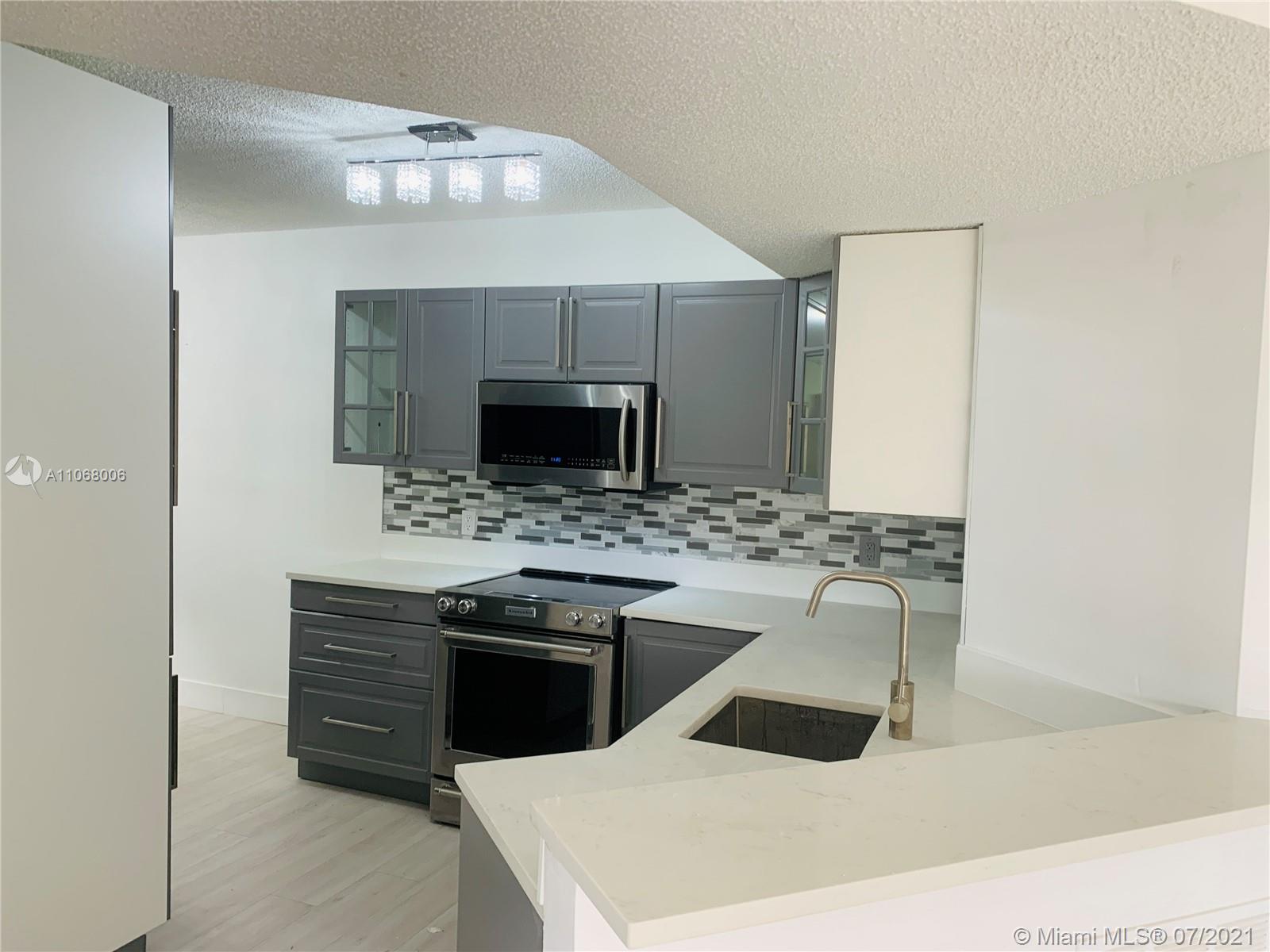Beautiful, Bright, Modern!!. Third-floor corner unit 3 bedrooms/2 bath has been completed remodeled from light switch to kitchen. Brand news Flooring, kitchen, Italian Milano 3cmquartz countertop, bathrooms, vanities with Carrera countertops, toilets, shower glass, new top Appliances, Smart range, washer, and Dryer, luxury light fixture. The unit has a split bedroom floor with vaulted ceilings in the main living area. All age gated community with many amenities, clubhouse, pool, spa, tennis courts, gym, barbecue area, walking distance, shopping plazas, and grocery stores.