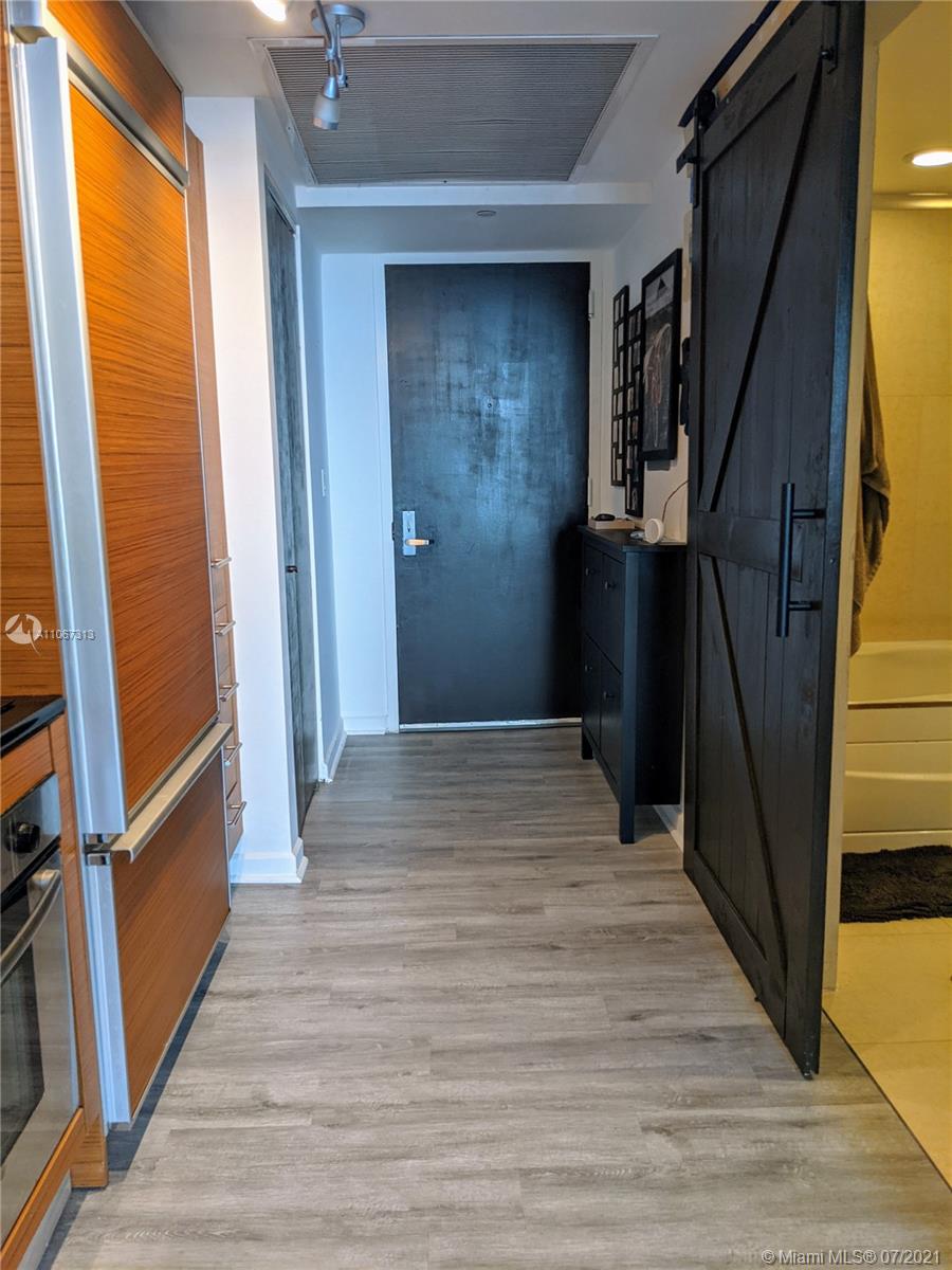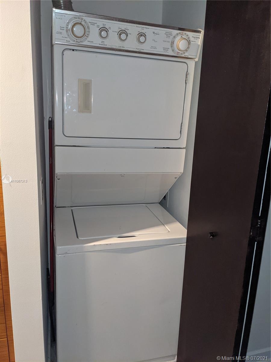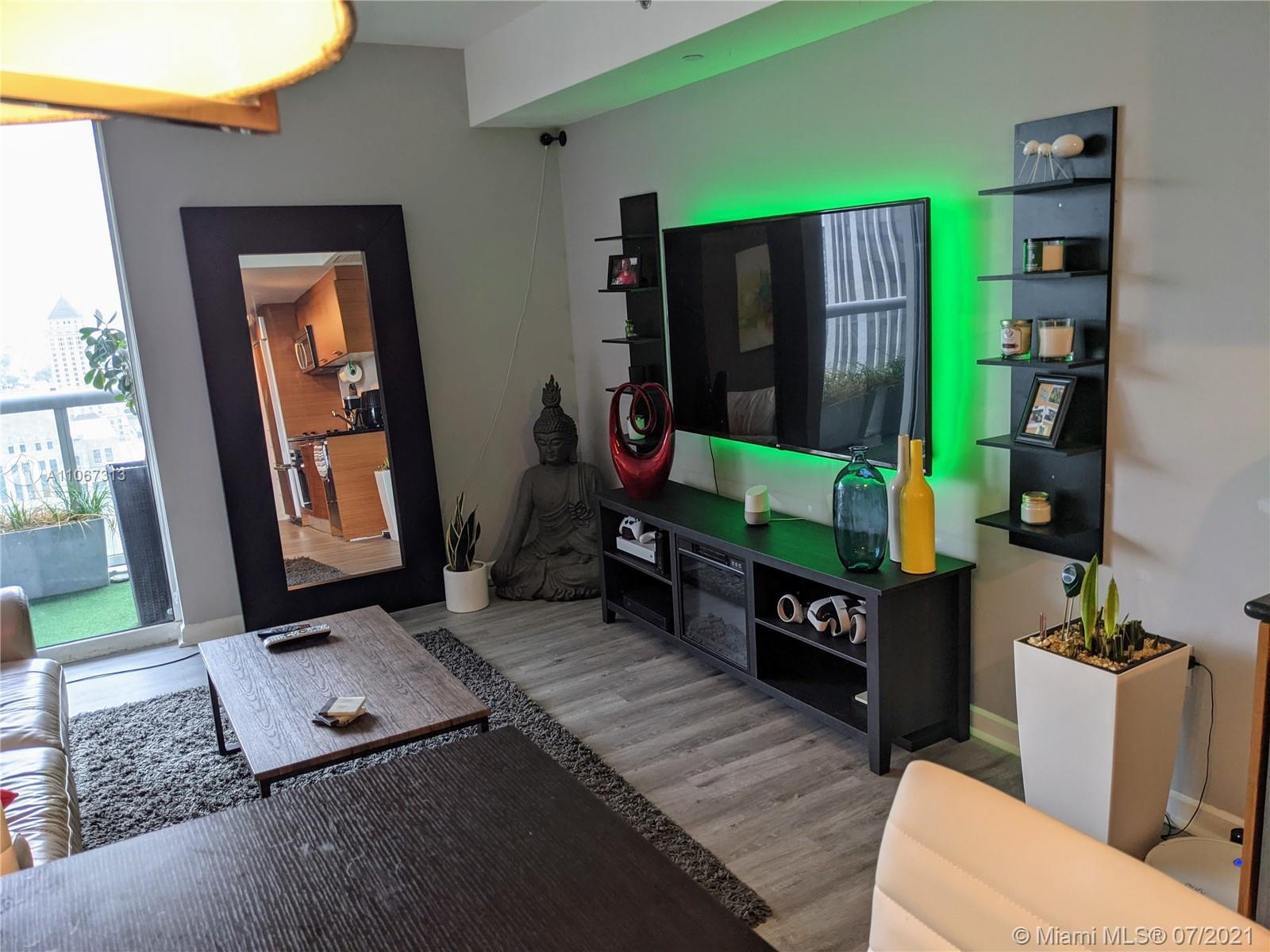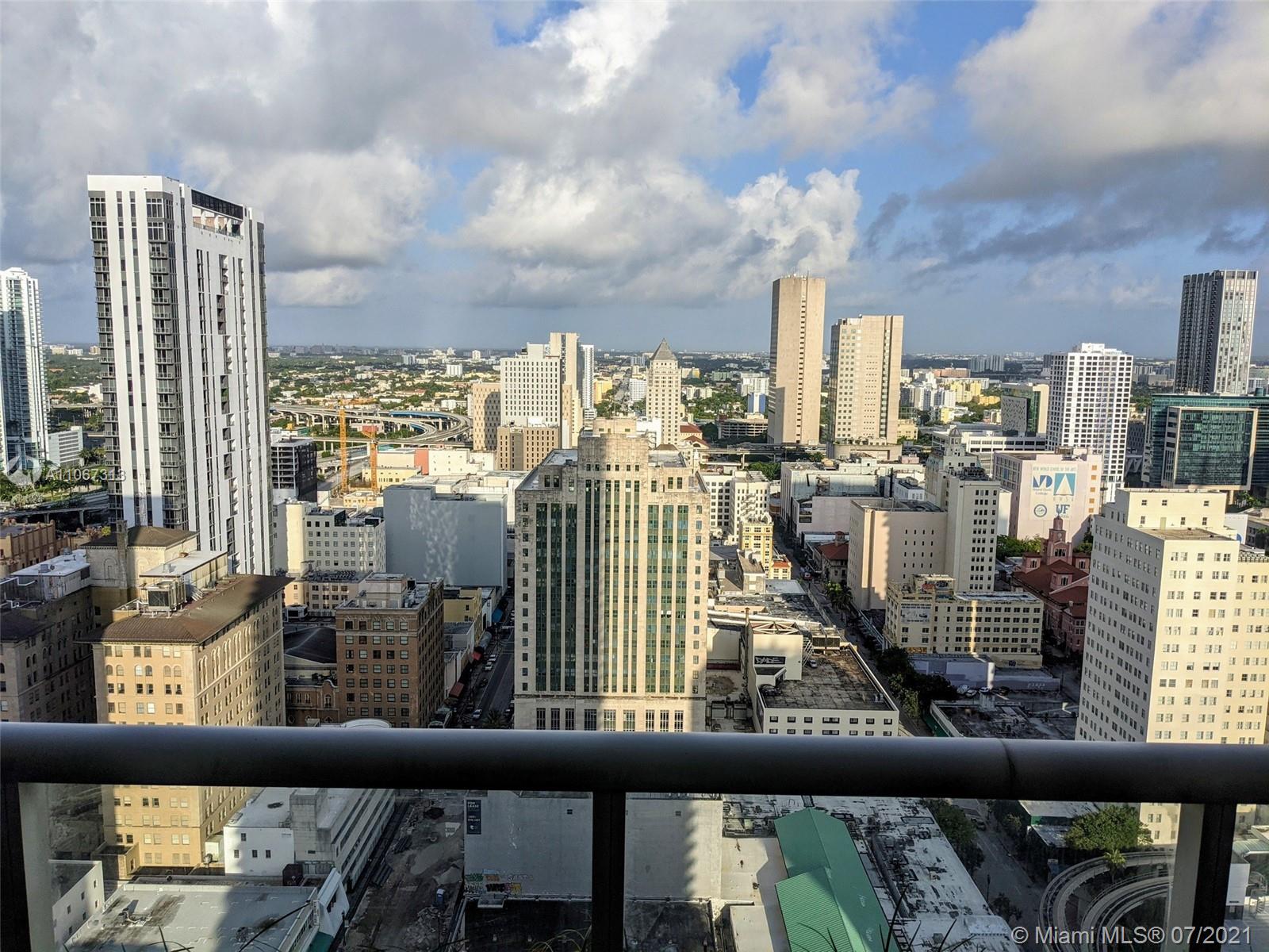 Beautifully remodeled larger studio in 50 Biscayne on 33rd floor with distinct dining area, living area and individual sleeping alcove with wonderful terraced view of complete skyline west. New Air condtioning, floors redone with luxury vinyl plank, bathroom with barn door, individually stacked washer/dryer in unit and sleeping alcove tastefully defined. 50 Biscayne features a beautiful 3 story lobby, 2 level club room with kitchen, 10th floor Infinity pool with resort design, cabanas and day beds, 2 level fitness and spa center with bay views, meditation, pilates and 24 hour valet and concierge service. All amenities and high speed Internet/WIFI as well as direct TV included in HOA, which is low for vicinity. Very pet friendly. Walk to work and enjoy downtown !
