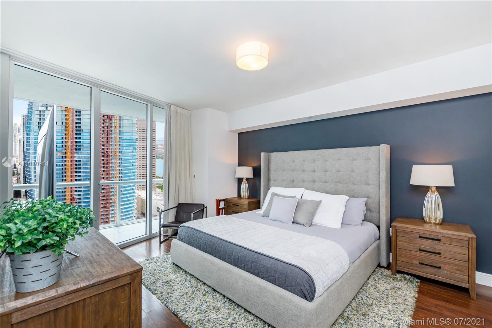This Luxury unit at the exclusive ICON Brickell features floor-to-ceiling high impact glass doors providing a bright and spectacular Miami River view!! Here you discover a place to enjoy the sunset and ocean breeze, which you can enjoy from the nice balcony or from inside the apartment. Porcelain and wood floors, built-in wood closet, Large bathroom, Washer/dryer, Open Kitchen with Italian cabinetry, sub-zero and wolf appliances. Fully Furnished and ready to move in. All within walking distance to Brickell's finest restaurants and shops. A five Star Amenities building with Grand just remodeled rooftop pool, Fitness Centers, Interactive Concierge services, Valet. One parking space, 24 hours Security. This beauty won't last!!!!