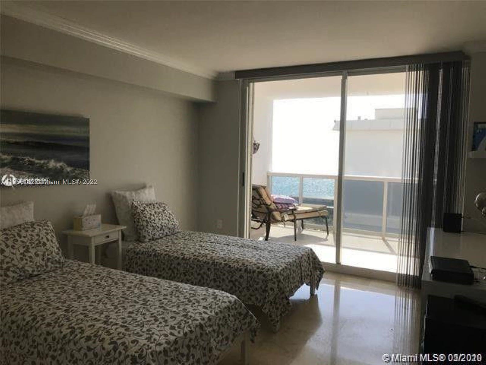 Oceanfront building amazing ocean views from living room, bedrooms, & kitchen, southeastern exposure, large balcony, 2 bedrooms & 2 full bathrooms, 1,530 square feet internal living space, tennis, pool, beach service, 24 hour security, concierage, 2 assigned parking spaces, & valet parking. Centrally located close to many restaurants & shopping, with big shopping center across the street. "As is" purchase with no showings permitted by uncooperative tenants, who might not leave at end of lease. Buyer will accept responsibility for dealing with these tenants agreeing to accept assignment of lease agreement. Water leak in master bathroom shower to unit below buyer agrees to fix, since tenants will not allow landlord's plumber access to fix.