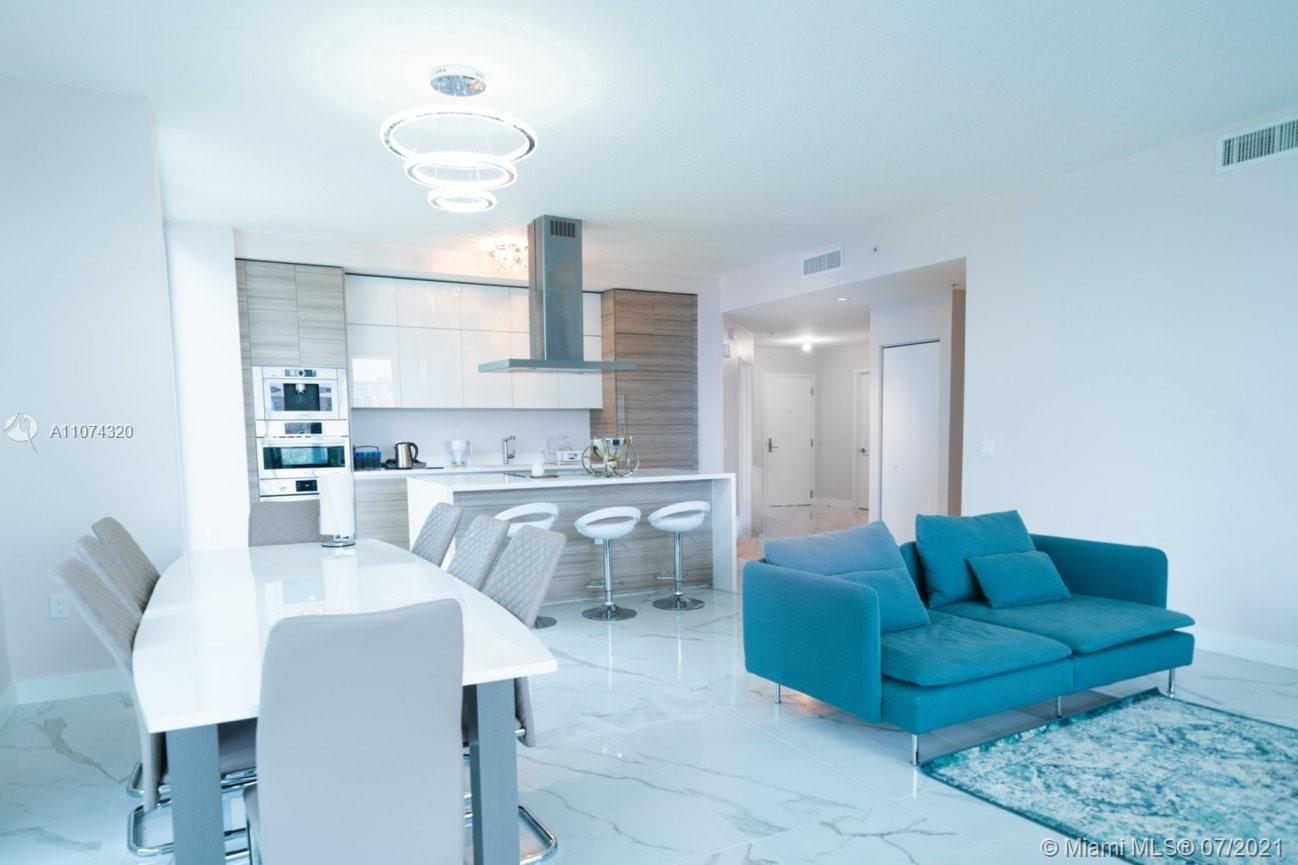New Luxury Resort in Sunny Isles. About 5 minutes walking to the beach. Large 3 bed room apartment with 3.5 bathrooms. High 11 Feet Floor to Ceiling windows. Total of 2,348 Square feet. Large corner Balcony 294 S.F. 6-th floor is one level above Pool area. Italian Kitchen design with build-in Bosch coffee machine and top of the line Appliances. Beach shuttle and Beach Service, Large swimming pools and Jacuzzi. Professional Gym and Saunas. Movie Theater. Large Kids room. Park across the road with Playground and stage for concerts. Famous restaurants and grocery stores within walking distance. Building provides free services with limitations during a year on apartment cleaning, car wash, flowers and twice a year airport limo service. School A Graded. Call Listing Agent for showings.