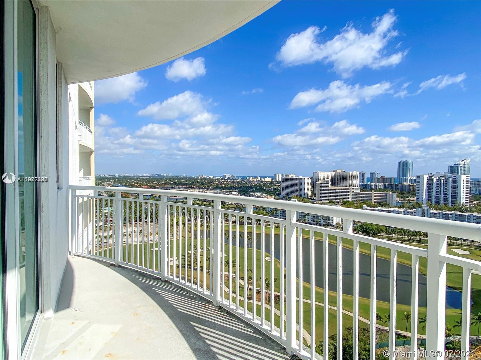 Presenting the best opportunity in the Duo! This corner unit features an incredible wrap-around balcony with view to the golf and city. Its' 1,354 sq ft efficiently spread between 2 large bedrooms make this home one of the most popular units in the complex. 10F CEILINGS Located within minutes of restaurants, Gulfstream Park, Aventura Mall, the beach and other stores, it is considered by many as the hidden gem of the market. The building features heated pool, spa, steam room, full gym, billiard room, tennis courts, jogging track, garage and much more. This unit includes 1 garage parking space + 1 assigned valet spot at no charge. The building includes an appliance contract with Total and basic cable/internet is included. It is truly one of the best buildings in town