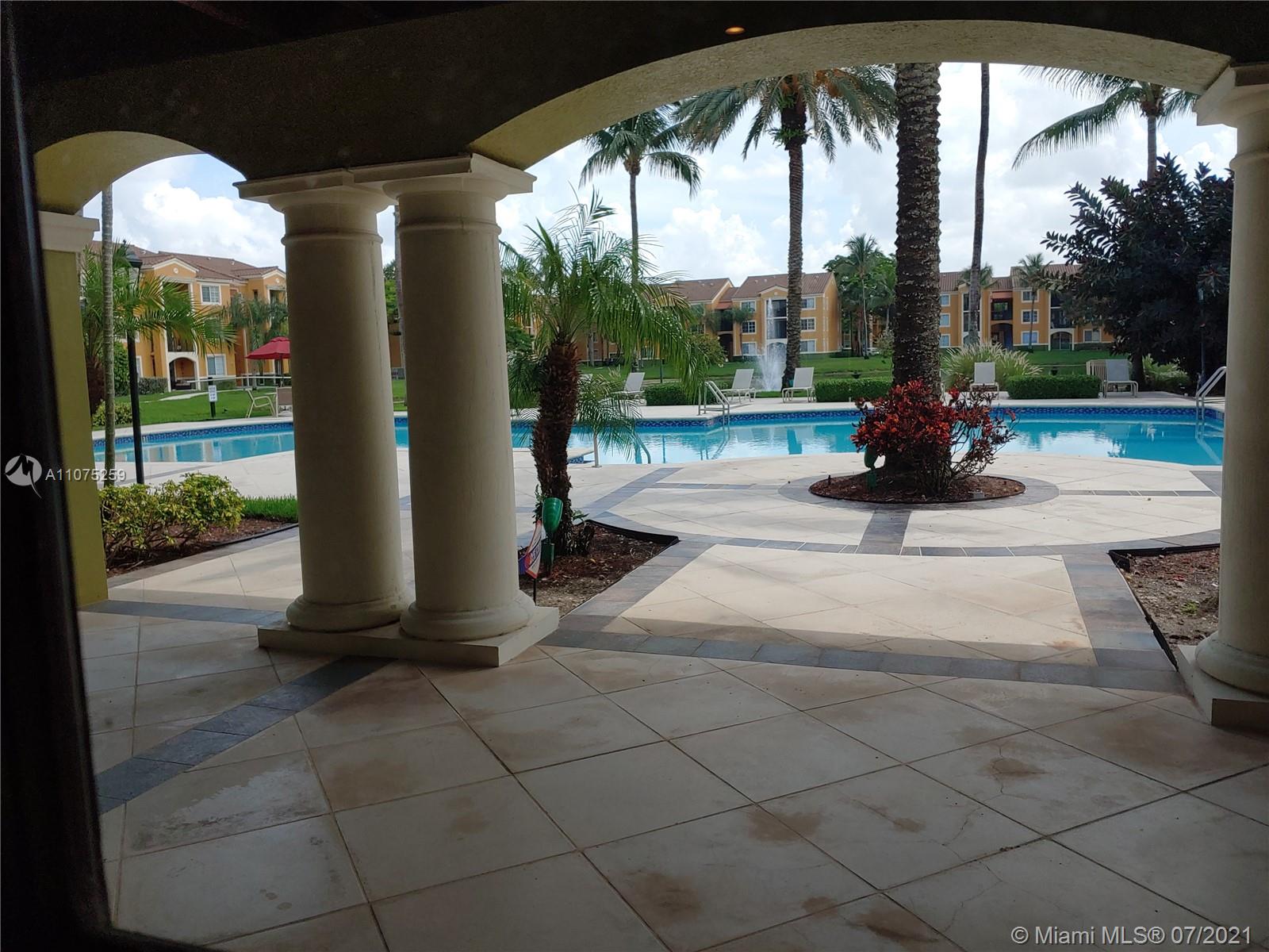 Beautiful 2 bedroom corner unit on the 2nd floor in a well kept gated community in west Miramar. A/c unit repaired and water heater were installed in 2020. Washer and dryer in unit. Spacious open floor plan separating bedrooms. Living room opens to balcony. Ceramic tiled floor. Shower stall in one bathroom and tub in Master bathroom. Interior photos supplied by owner and taken prior to current tenant move in. Please note correction on AC unit. Owner gave updated information 8.31.21 and apologizes for error. Large unauthorized pet on premises. show with caution. PLEASE WEAR MASK. Tenant occupied until September 30, 2021(updated info)
