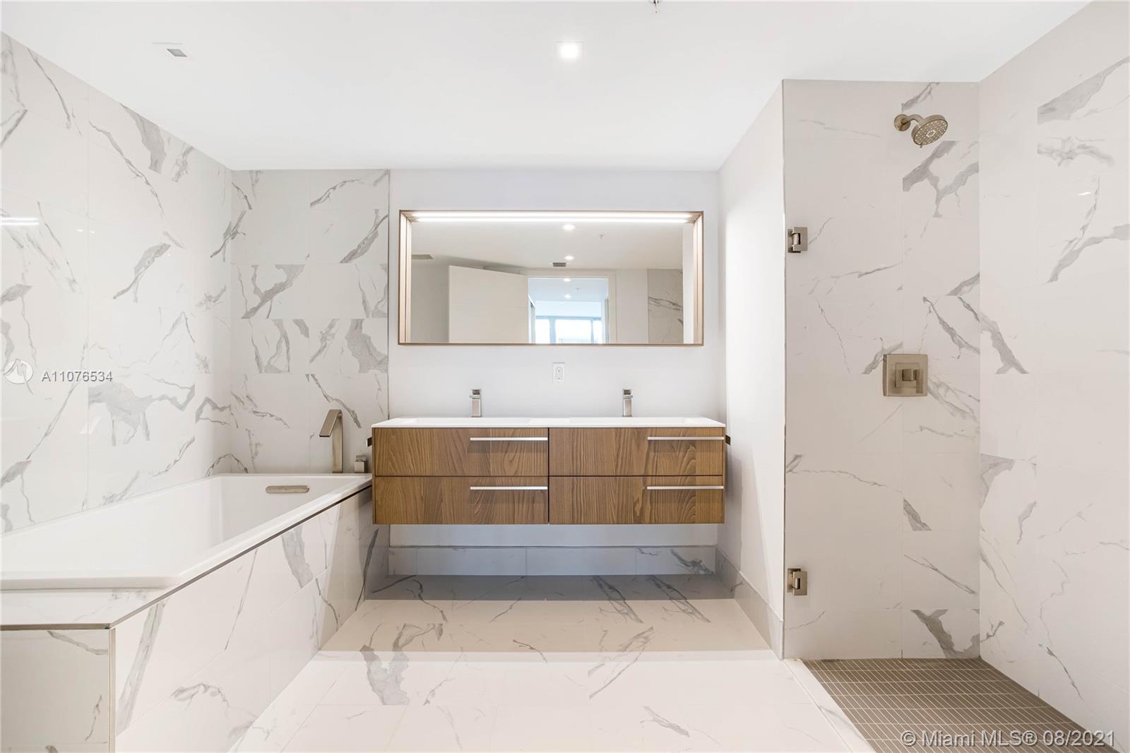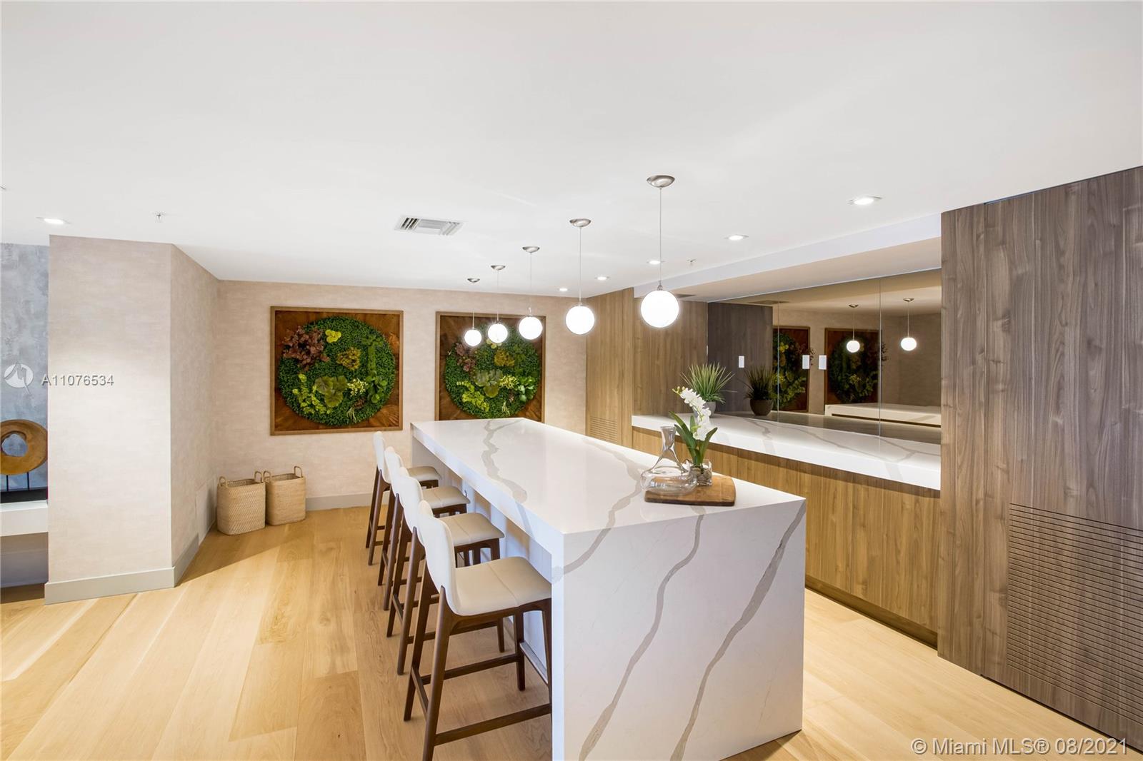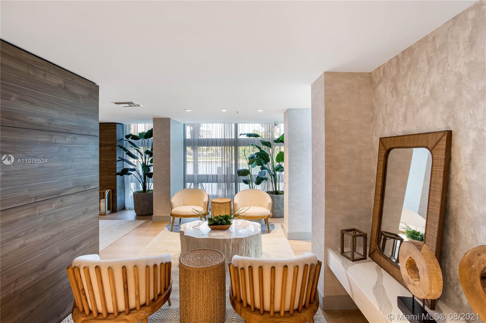 An intimate 9 story waterfront property consisting of only 41 residences. 1 Bedroom plus Den and 2 full bathrooms. 9ft-high ceilings featuring floor-to-ceiling glass windows, Appliances by SubZero® and Wolf® Master bathrooms with stone countertops, double sink vanities and European designed fixtures Key-fob operated elevators for residents, 2 assigned, covered parking spaces per residence –Private storage for each residence. 40 ft long infinity pool w Bay views & Stunning 2 story lobby. Whirlpool overlooking the ocean and Biscayne Bay Poolside lounge area w cabanas and lounge area – Outdoor bar and dining spaces Fire pit with comfortable social seating, bicycles and water sport package including kayaks and paddle boards available for residents.