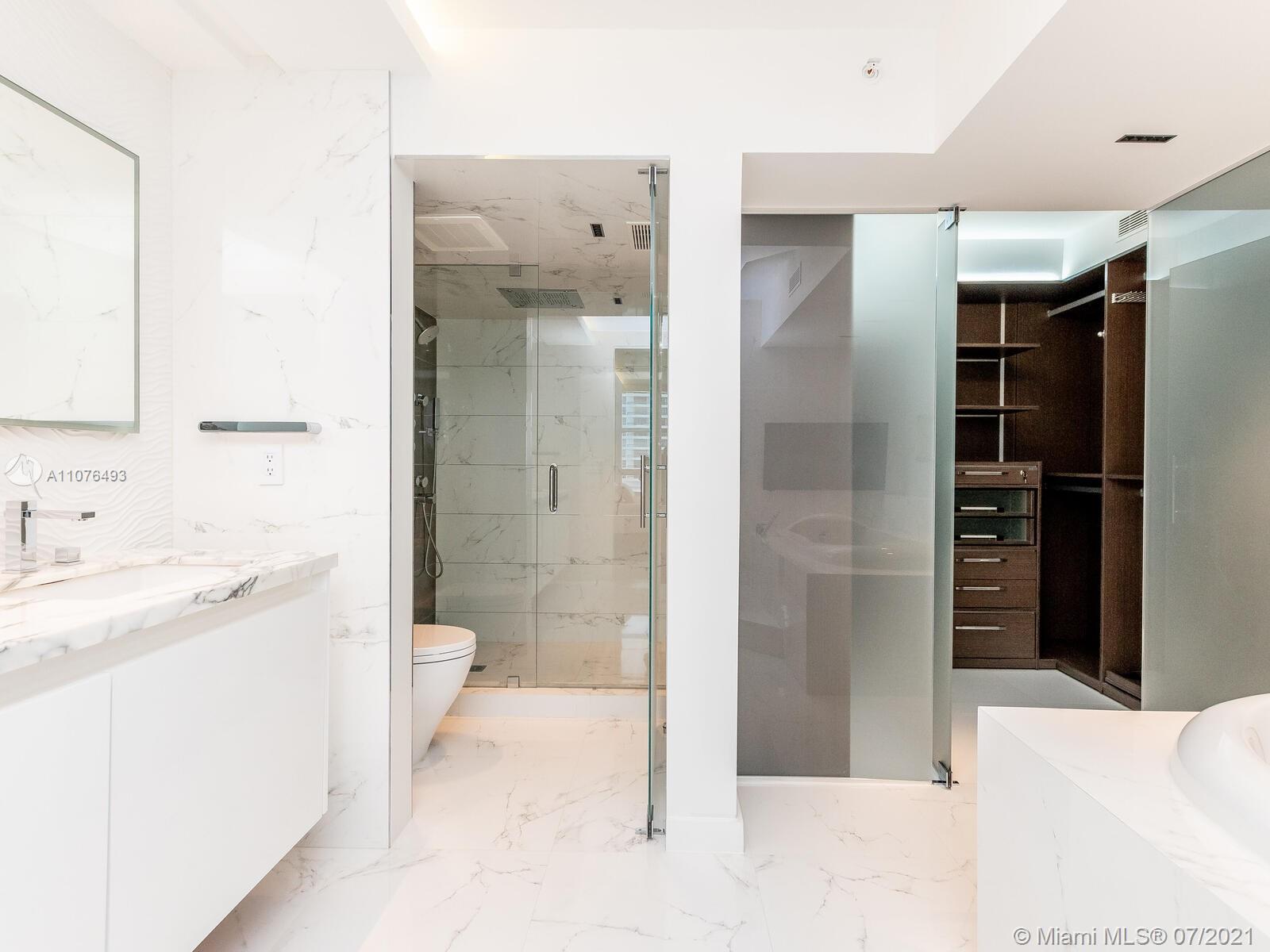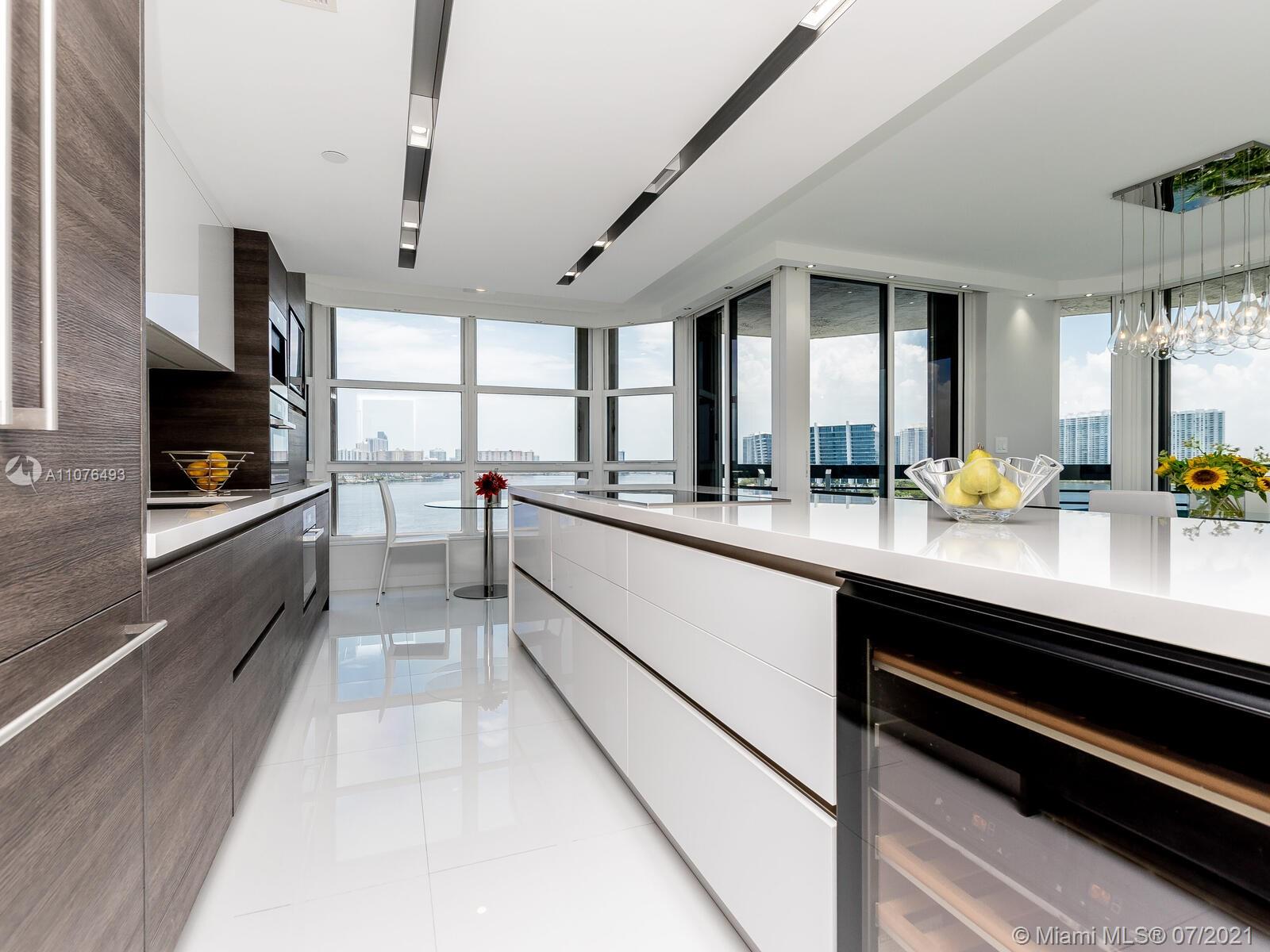 Stunning 3/3 corner, with Spectacular Intercostal and Ocean views. Unit features gorgeous porcelain glass floors throughout, Spectacular Kitchen custom designed by Salvatore Kitchens, Miele appliances, Quartz counter tops, Kreon light fixtures and wall panels from Belgium, Porcelanosa design bathrooms, large master bath with Jacuzzy Hydrotherapy & Spa, Custom Armadi closets, Lutron LED lighting system in whole condo, Two (2) Parking spaces, extra storage, concierge, 24-hrs security, valet, resort style pool, spa, tennis, marina, dog park, hair salon, restaurants and stores all in one complex.