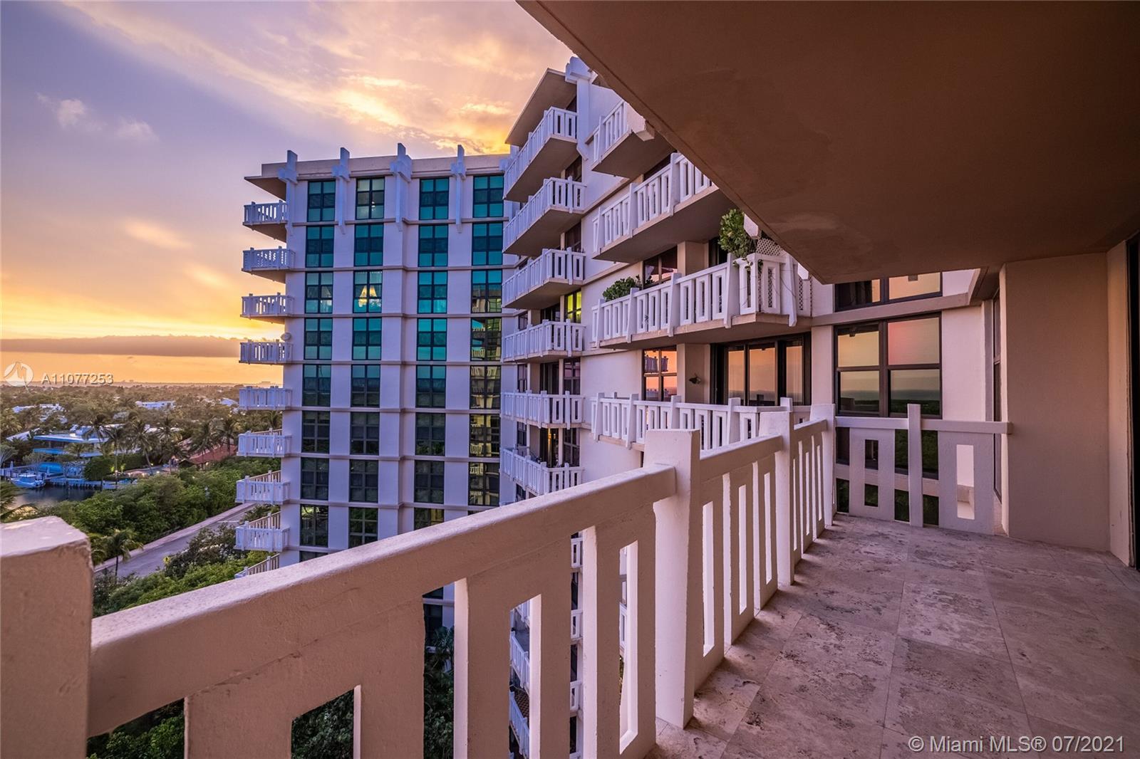 Resort-like serenity awaits in this Island Paradise! Spectacular views of the bay, canal, and state park in this updated flowing unit with double balconies. Enjoy spacious open living, dining and large kitchen with new Bosch appliances. Lots of counterspace to whip up your favorite meals and entertain family and friends. For extra privacy, unwind in split bedrooms—extended main suite retreat with private balcony on one side and guest room and bath on other. Polished travertine marble floors throughout, impact windows, separate storage unit. Great amenities with private access to incredible beach, heated pool, fitness center, tennis court, gazebo and BBQ. Assessment paid. All in a fantastic Key Biscayne location close to shops, restaurants, and natural attractions.