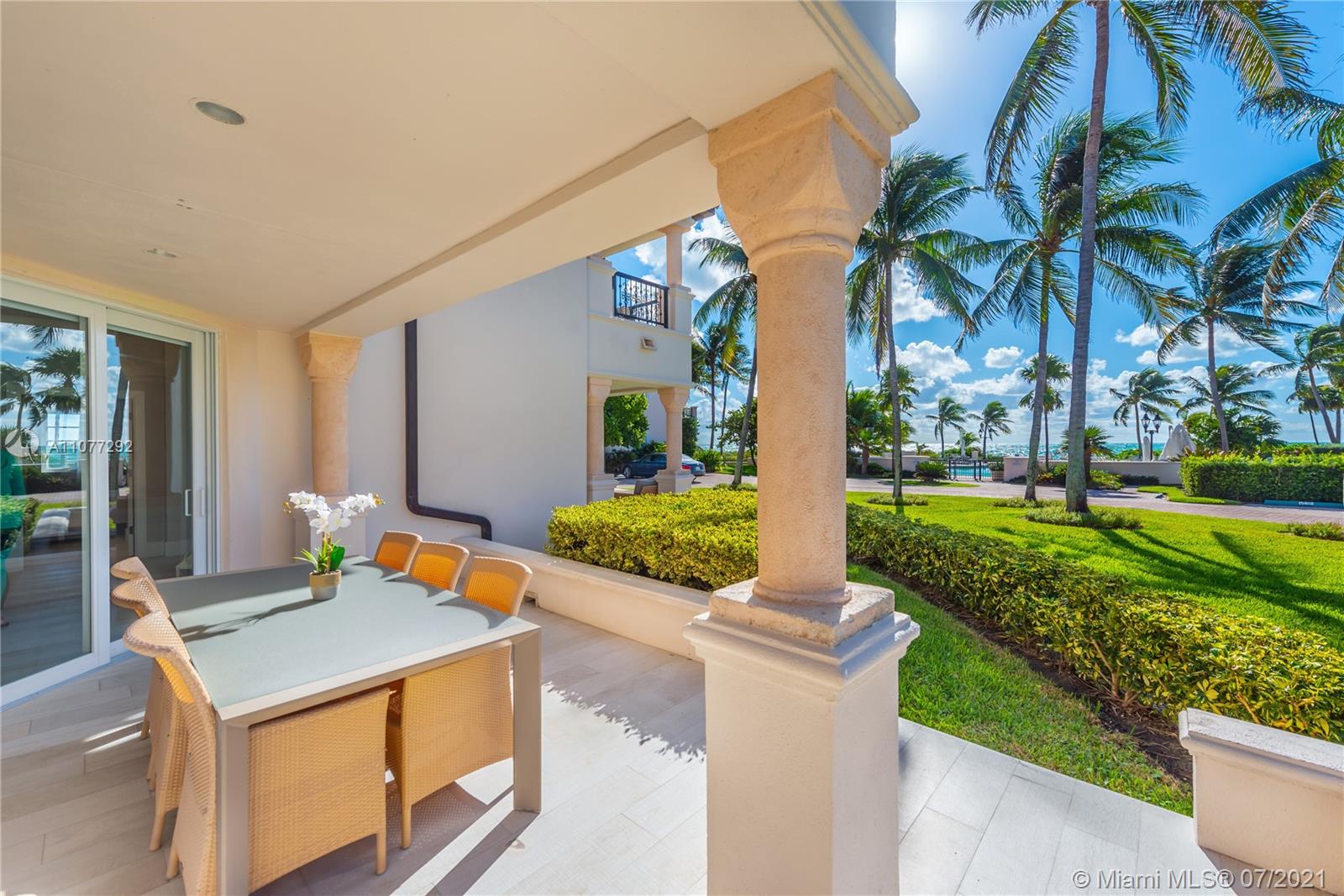 Experience Fisher Island living at its finest in this beautifully renovated 3 bedroom, 3.5 bath ground floor Seaside Villa with expansive terraces overlooking the pool and the ocean. Features include bedrooms with bathrooms and closets, impact glass doors and windows, automated blackouts, and many more features. The unit is offered fully furnished. It can be rented short or long term. It comes with 2 assigned parking spaces and 2 assigned golf cart parking spaces. Visit this exceptional unit. No membership required. Easy to show!