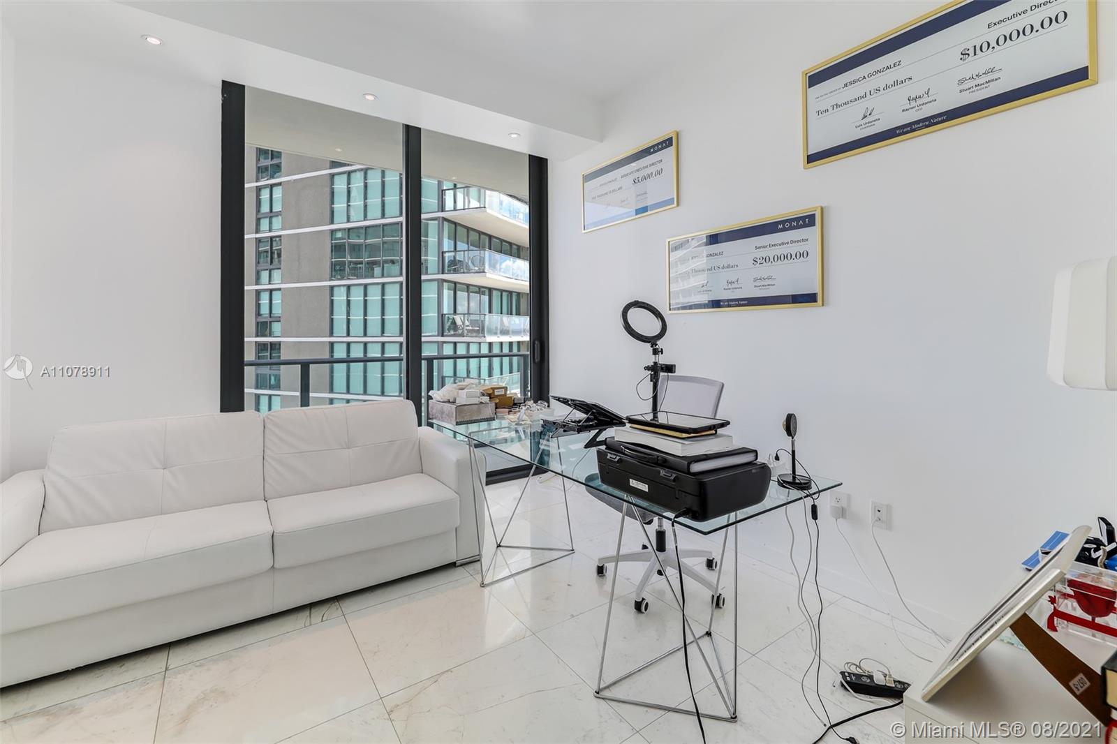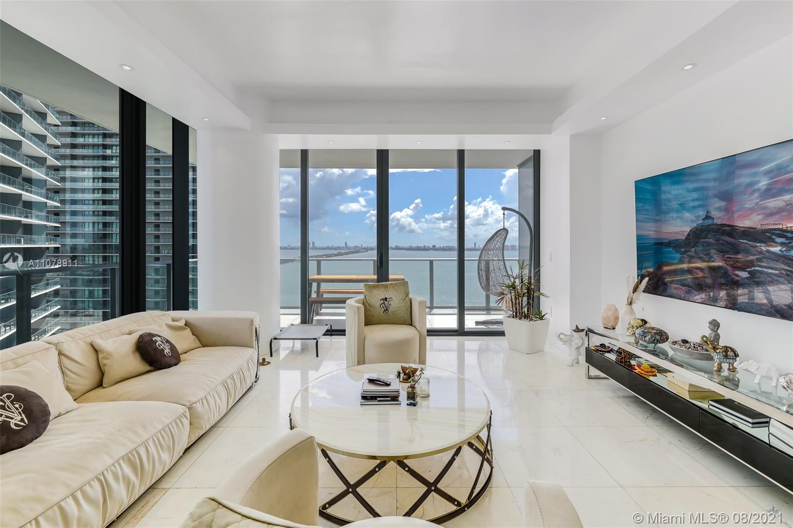 Stunning 3 bedrooms and 3 bathrooms plus Den. Amazing views to the water with private elevator and private foyer. This unit features many upgrades such as: marble flooring, solar shades and blackouts, built-out closets in all the bedrooms, plus an upgraded and expanded master closet with customized lighting and sitting area, customized lighting in the living room and bedrooms, and customized doors in the laundry and AC closet. Enjoy the best views of the bay from this gorgeous unit. Gran Paraiso inside the Paraiso District is the best development in Edgewater and one of a kind with its neighborhood feel. Building has 5-star amenities such as lobby attended 24- hours, valet, parking, state-of-the-art fitness center, tennis courts, children playground, spa and more.