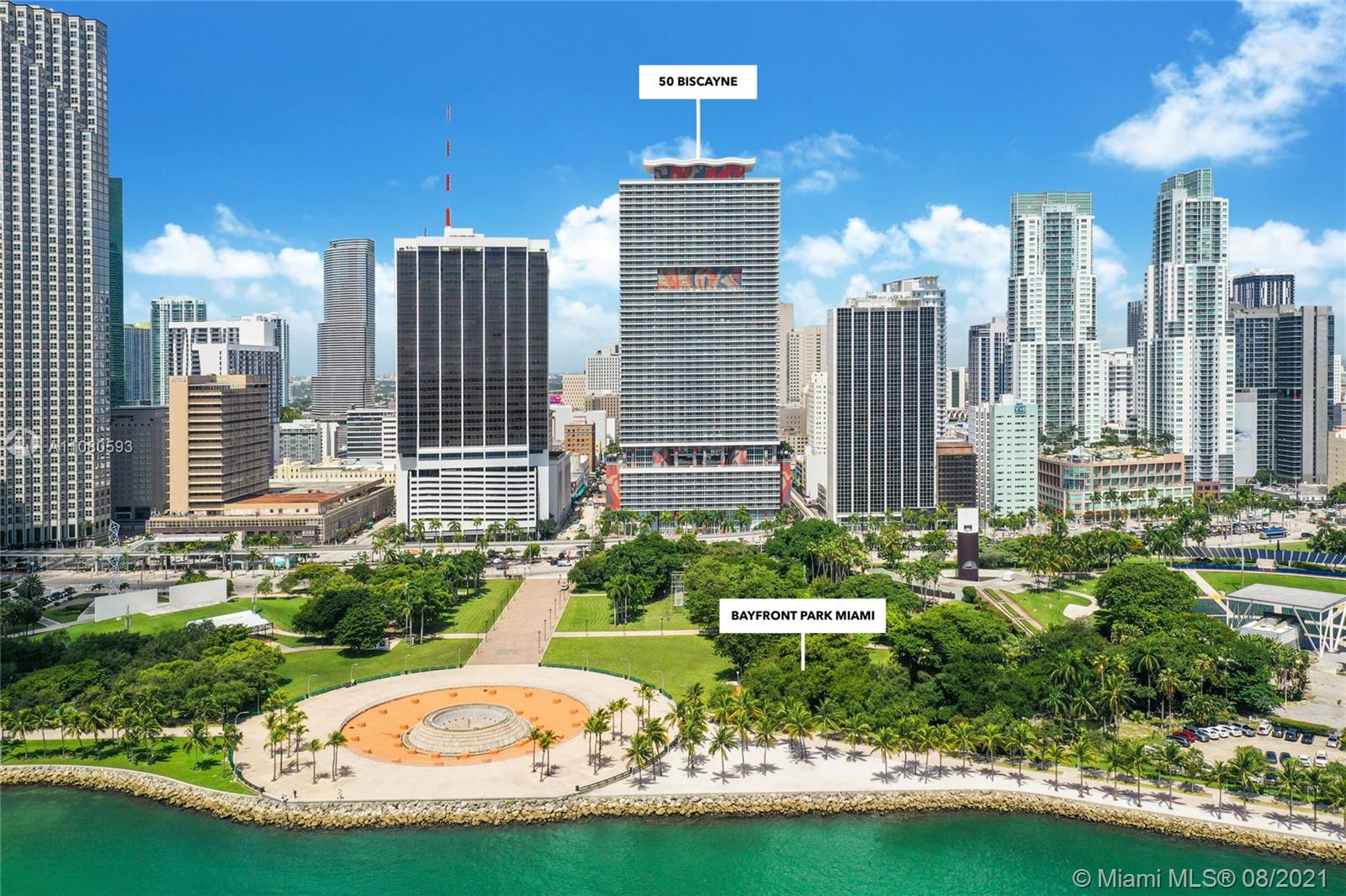 50 Biscayne , is an iconic building on US1 - Biscayne Blvd , located across from the Bayfront Park ( 32 acre) , another design by Sieger Suarez Architects. A luxury building with plenty of amenities to enjoy. Steps way and walking distance from "FTX Arena" home for Miami Heat Basquetball Team , Museum of Science, Adrienne Harsht Center , Ziff Opera, City Ballet and Symphonic Orchestra. PAMM (Perez Art Museum Miami ) Quick access to most most important Expressways, be in minutes in Miami Beach , Brickell area . This building has an amazing Location with a mix of Flavors, Art, Nature, trendy Shopping and the best Dinning in town. Enjoy all this from this corner unit with Bay and skyline city views. One Parking Assigned, second one through Valet $ 200 per month.
