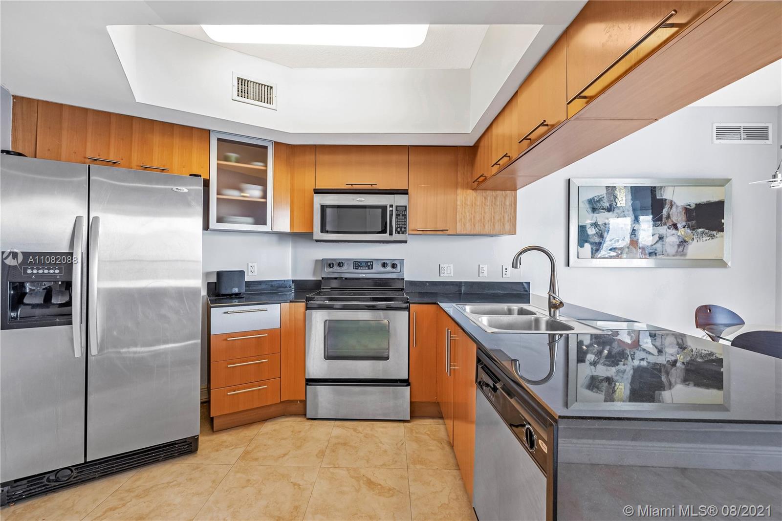 Gorgeous completely renovated 2/2 with Spectacular city and bay views. Open balcony and lots of storage space. Two garage parking spaces are needed. The unit features Granite Counter Tops & Stainless Steel Appliances, a built-in wine cooler, a Walk-in closet, and lots of attention to detail throughout. Great Amenities Including Pool, tennis courts, basketball, Gym, & Social Room/BBQ Area.