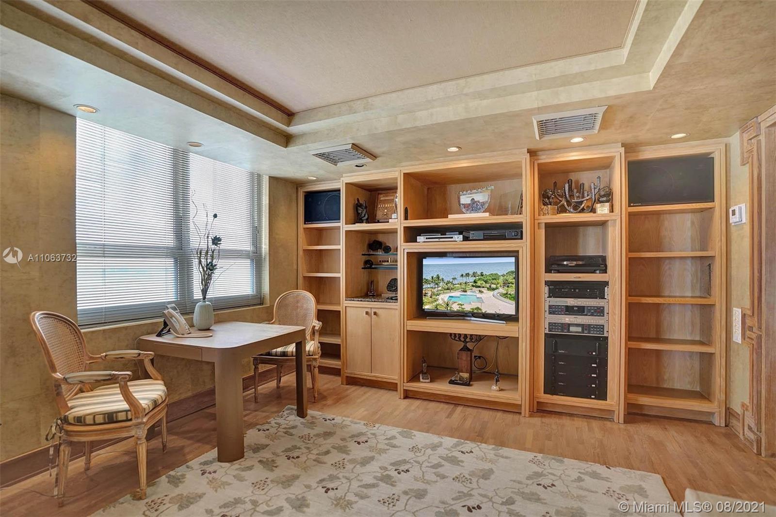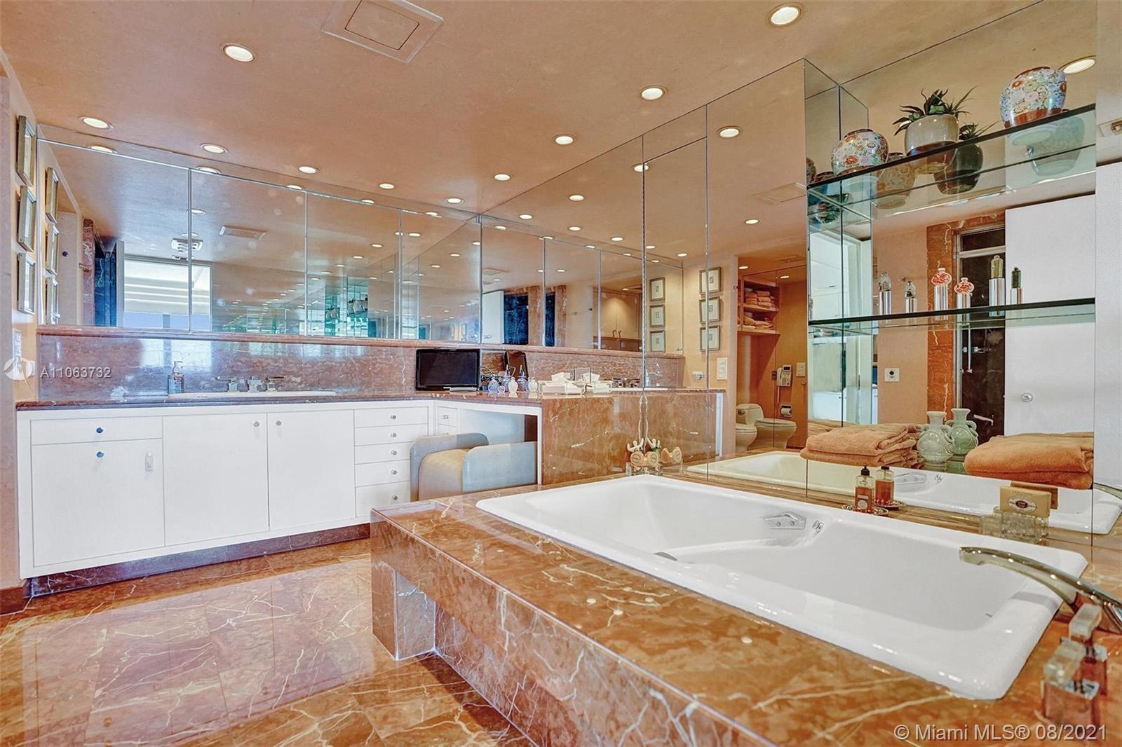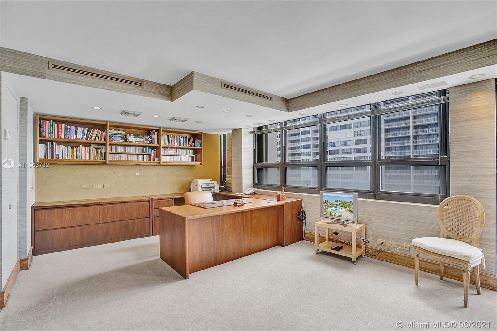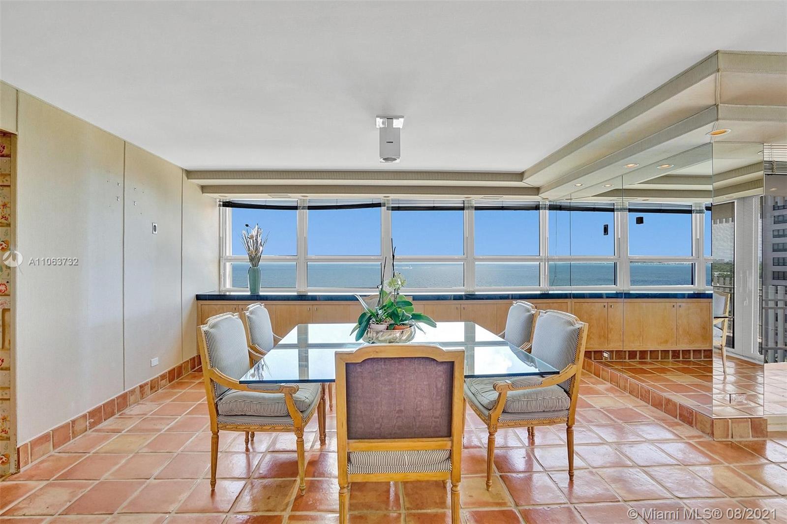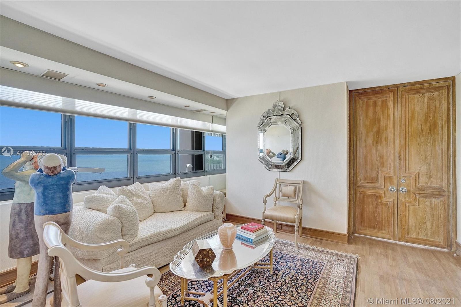 SPECTACULAR 5,012 sf GROVE ISLE APARTMENT: 270 degrees stunning views Biscayne Bay & Coconut Grove. Two 3-bedroom corner units combined by the original (and only) owner with special architectural features to create a home designed for gracious living and entertaining. SPECIAL FEATURES: Approx. 51 ft Living room (space for a grand piano); 32 ft entrance hall; dining room: permanent seating for 16 – and 24 for special occasions; Primary bedroom and attached sitting room, his & hers separate bathrooms & closets; large Library/TV room; large Office & file space; 4 terraces; Guest suite; Service bedroom & bath for housekeeper, health aide, or catering staff. Grove Isle is a secure 20-acre guarded island with full services and resort style amenities. This unique apartment is a rare opportunity.