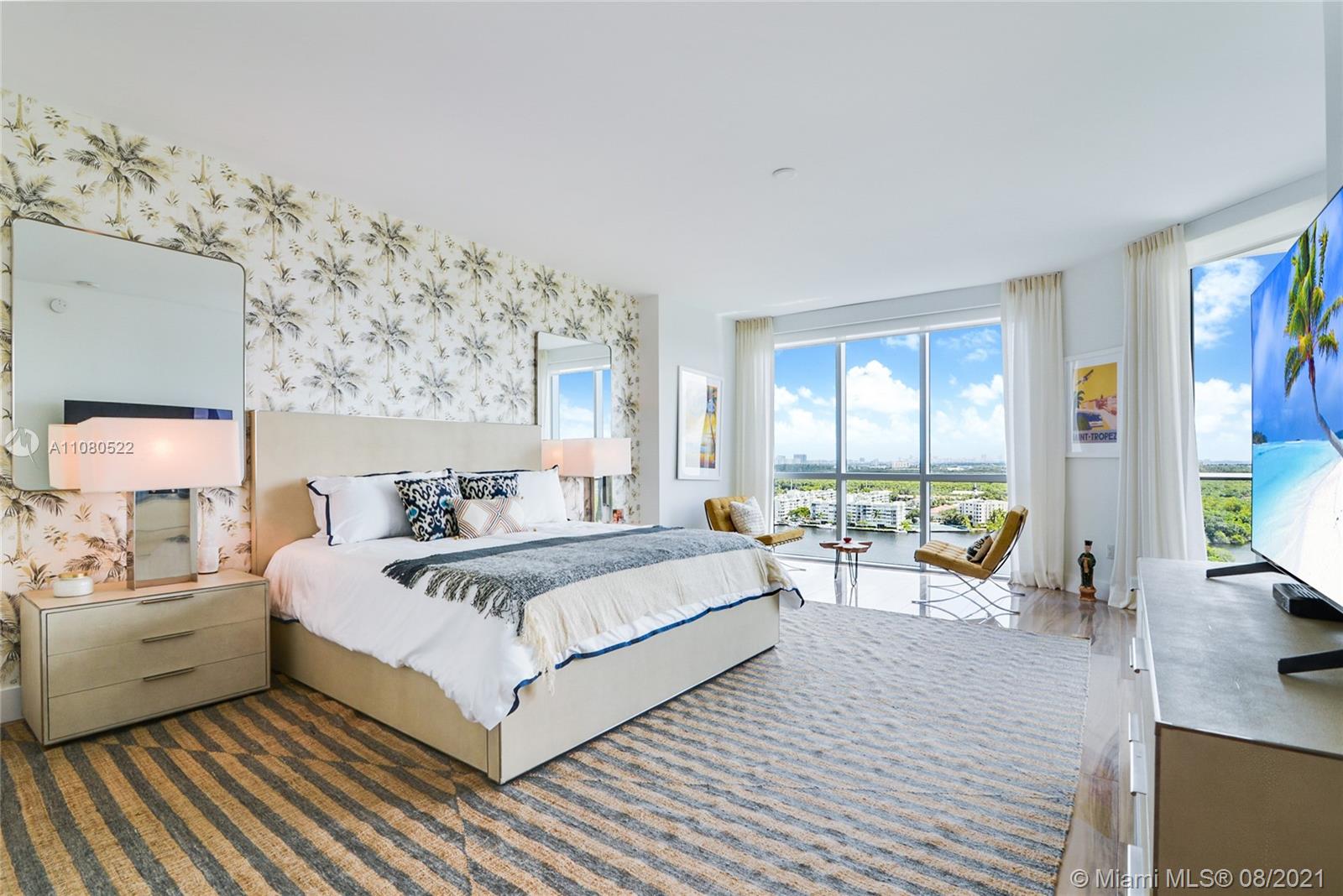 THIS UNIT WILL NOT LAST!!! THE MOST BEAUTIFUL UNIT AT MARINA PALMS RESIDENCES WITHOUT A DOUBT. DECORATED BY ONE OF THE BEST DECORATORS IN THE US. UNIT IS 3 BR + DEN / 3.5 BATHS WITH GORGEOUS VIEWS OF THE BAY, OCEAN AND SOUTH. PORCELAIN FLOORS FROM ITALY THROUGHOUT THE UNIT. CAREFULLY SELECTED FURNITURE WAS CHOSEN BY THE DECORATOR AND CAN BE PURCHASE FOR $100,000. ORIGINAL WARREN PLANTER DINING TABLE FROM THE 50'S, KARTELL DINING ROOM CHAIRS FROM ITALY, SOFA FROM ARTEFACTO, DESIGNER LIGHTING FIXTURES, AREA RUGS FROM THE MOUNTAINS OF TURKEY AND AFGHANISTAN, CALIFORNIA CLOSETS, SCHUMACHER GRASS CLOTH WALLPAPER IN LIVING MORE AND MUCH MORE. UNIT IS BEING SOLD "TURNKEY" AND "AS IS". ARTWORK AND FURNITURE ARE NOT INCLUDED IN SALES. 50 FOOT BOAT SLIP IS ADDITIONAL FOR SALE. BRING YOUR BEST OFFER.