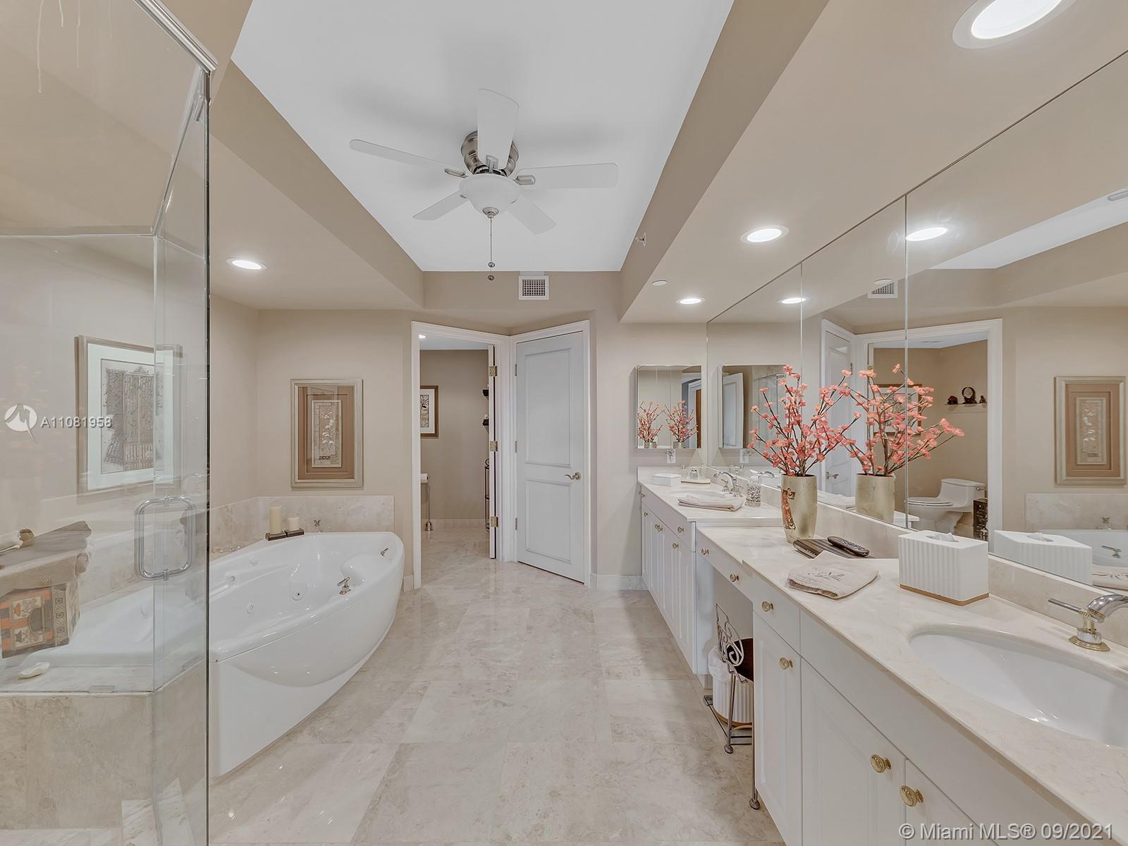 Take your private elevator up to this spacious condo where you will be greeted by breathtaking views of the Intracoastal Waterway, the Atlantic Ocean, and the majestic Turnberry Golfcourse! This 2,973 square foot condo located on the Intracoastal Waterway in the heart of Aventura boasts a flow-through floor plan with east to west views, marble flooring throughout, a kitchen with top-of-the-line appliances, and a spacious den that can be used as a third bedroom. You will enjoy relaxing on your large terrace watching the boats sail by, or on your second terrace overlooking the sparkling lakes and golf course. The building's resort-style amenities include two pools, tennis courts, a waterfront restaurant, valet parking, state-of-the-art fitness centers, theater, playground, and much more!
