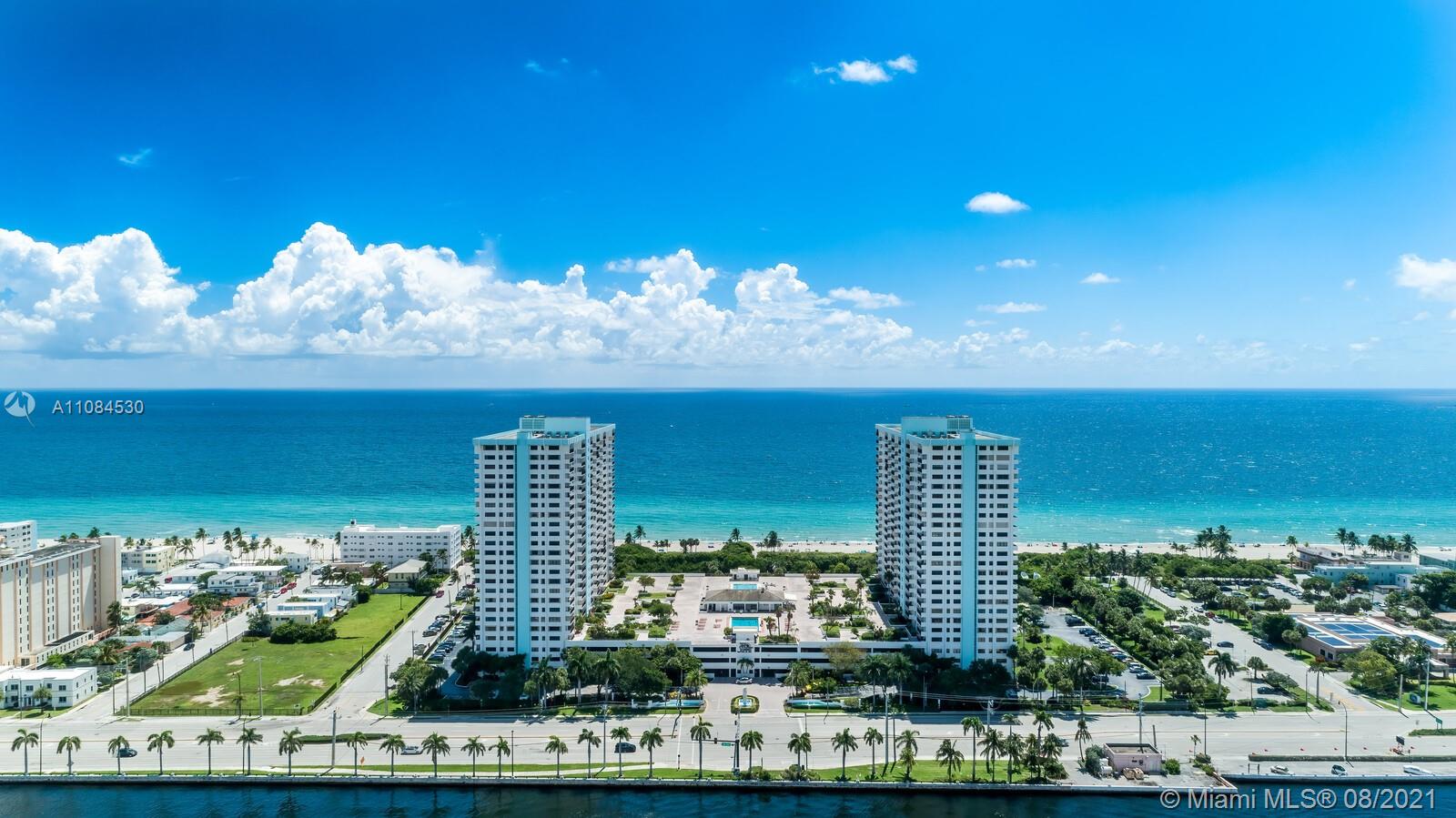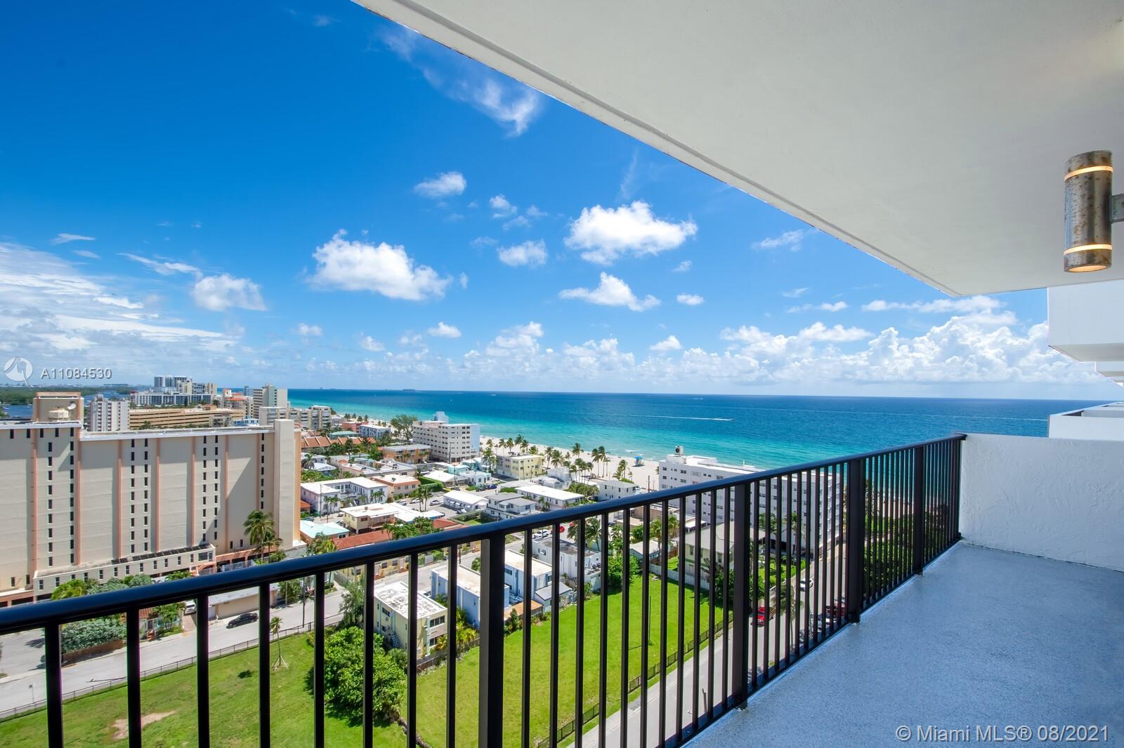 Welcome home to this professionally designed and remodeled beach paradise. Located in Hollywood Florida on the ocean. Features include two bedroom two bathroom 1,570 SQFT under air. Renovations took 18 months to complete from studs out to terrace. Upon entering the space, instant ocean views can be enjoyed thanks to the now open style floor plan. The kitchen, completed w/marine grade wood cabinets, SS appliances, quartz counters. Exterior windows/doors are all now hurricane/impact. BanUltra Tubs in both bathrooms w/jacuzzi style tubs. New electric wiring, LED Lights, panel, fixtures, dimmers. Details include shaved walls, rounded corners with baseboards. The terrace has been updated to a sprayed balcony flooring. New AC unit and duct work. 2 covered parking spaces in garage and storage.