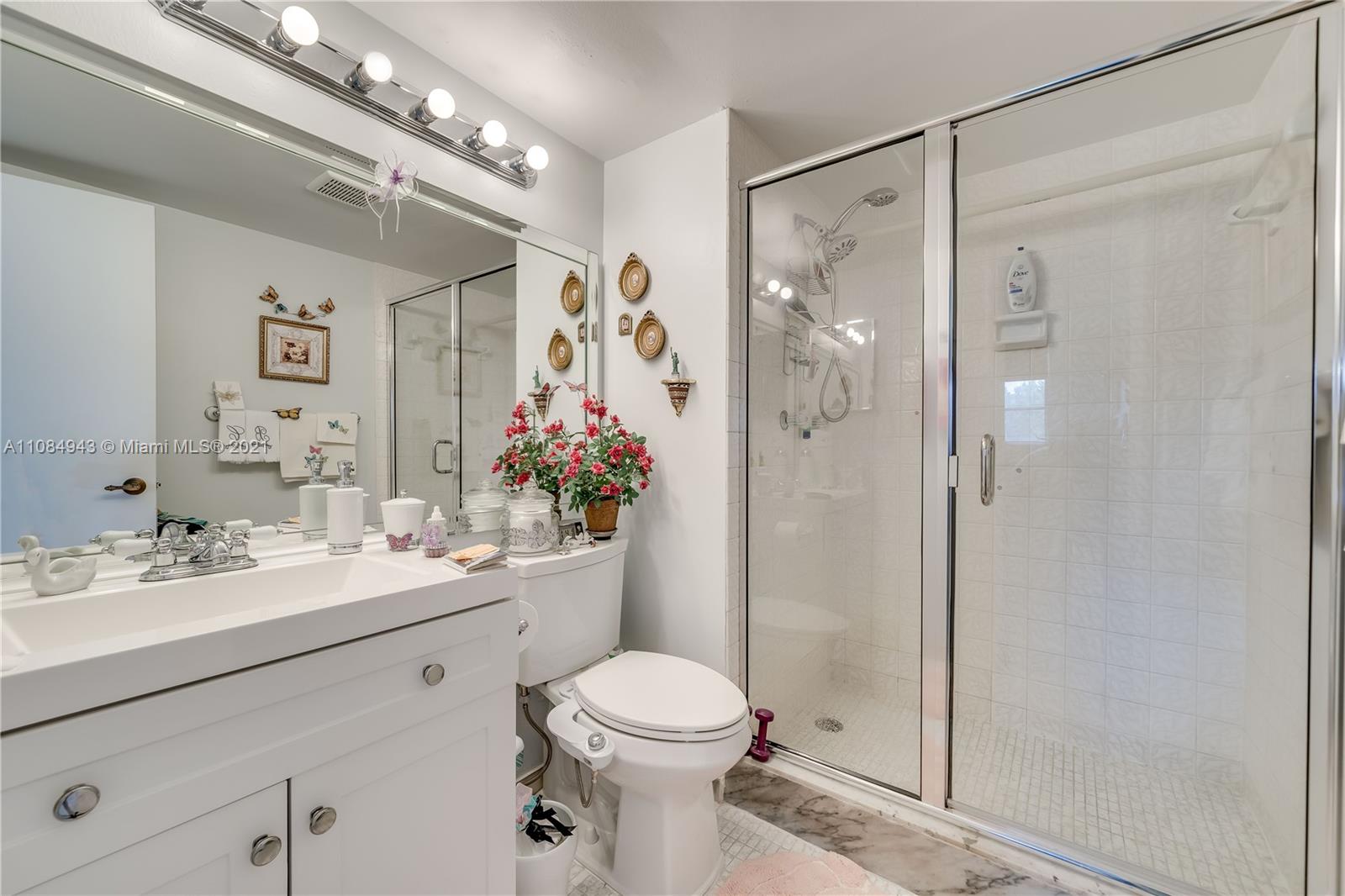 Kept in immaculate condition which has been upgraded with the last year. This 2 bedroom 2 bathroom ground floor unit features a new concept of interior design which outlines the essentials of a classic timeless contemporary style. State of the art chef's kitchen with sleek countertops, identical countertops and backsplash with an elegant stone design , contemporary white shaker cabinets, crown molding and stainless steel refrigerator, cooktop stove with a convection oven and microwave. Front load washer and dryer. Diagonally installed ceramic floors. Eastern exposure view from the patio. Which looks onto the manicured landscaping. That is walking distance from the nearby satellite pool. PAID UP REC LEASE.