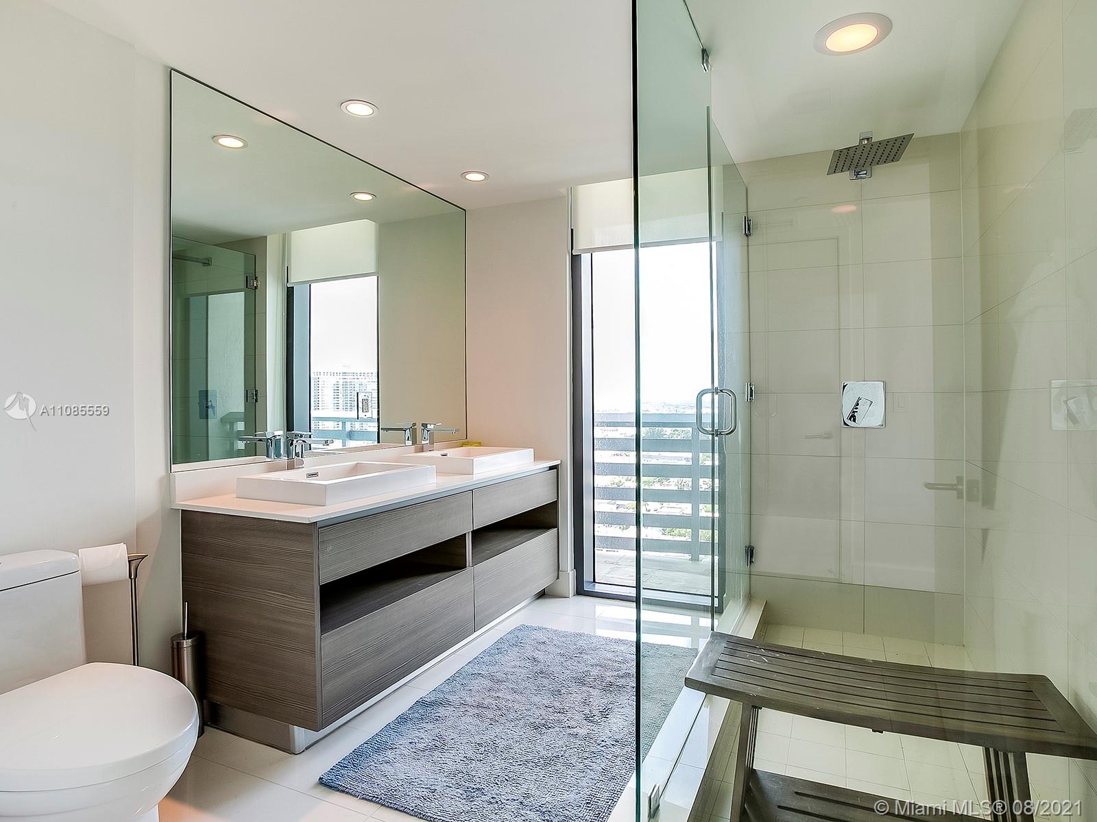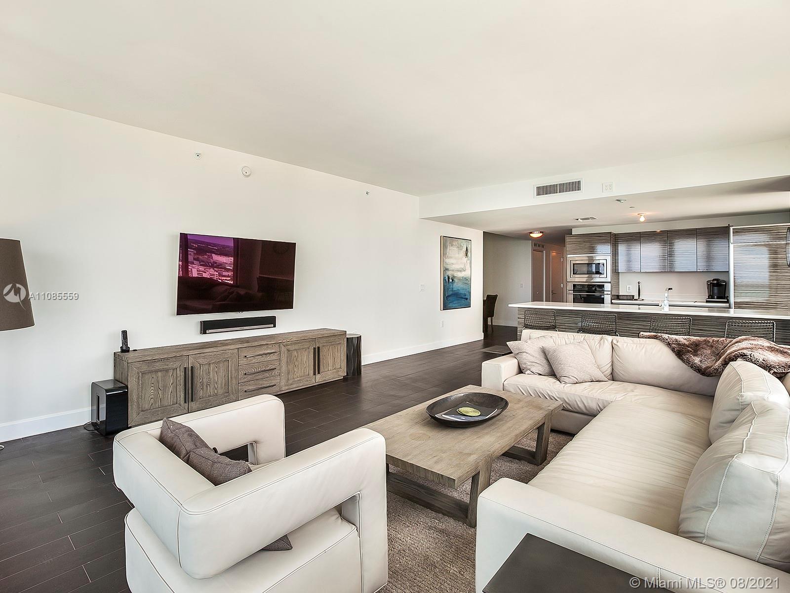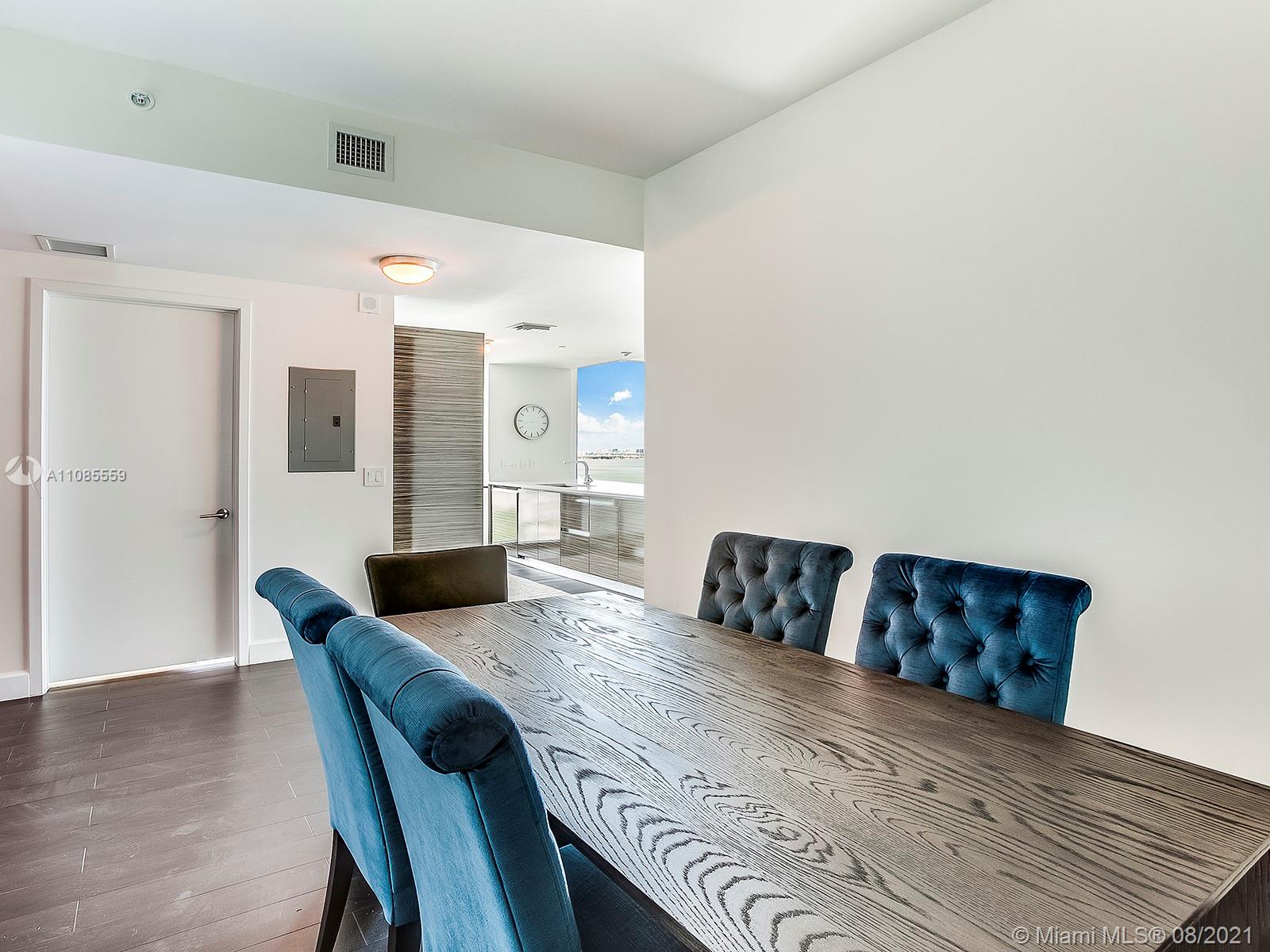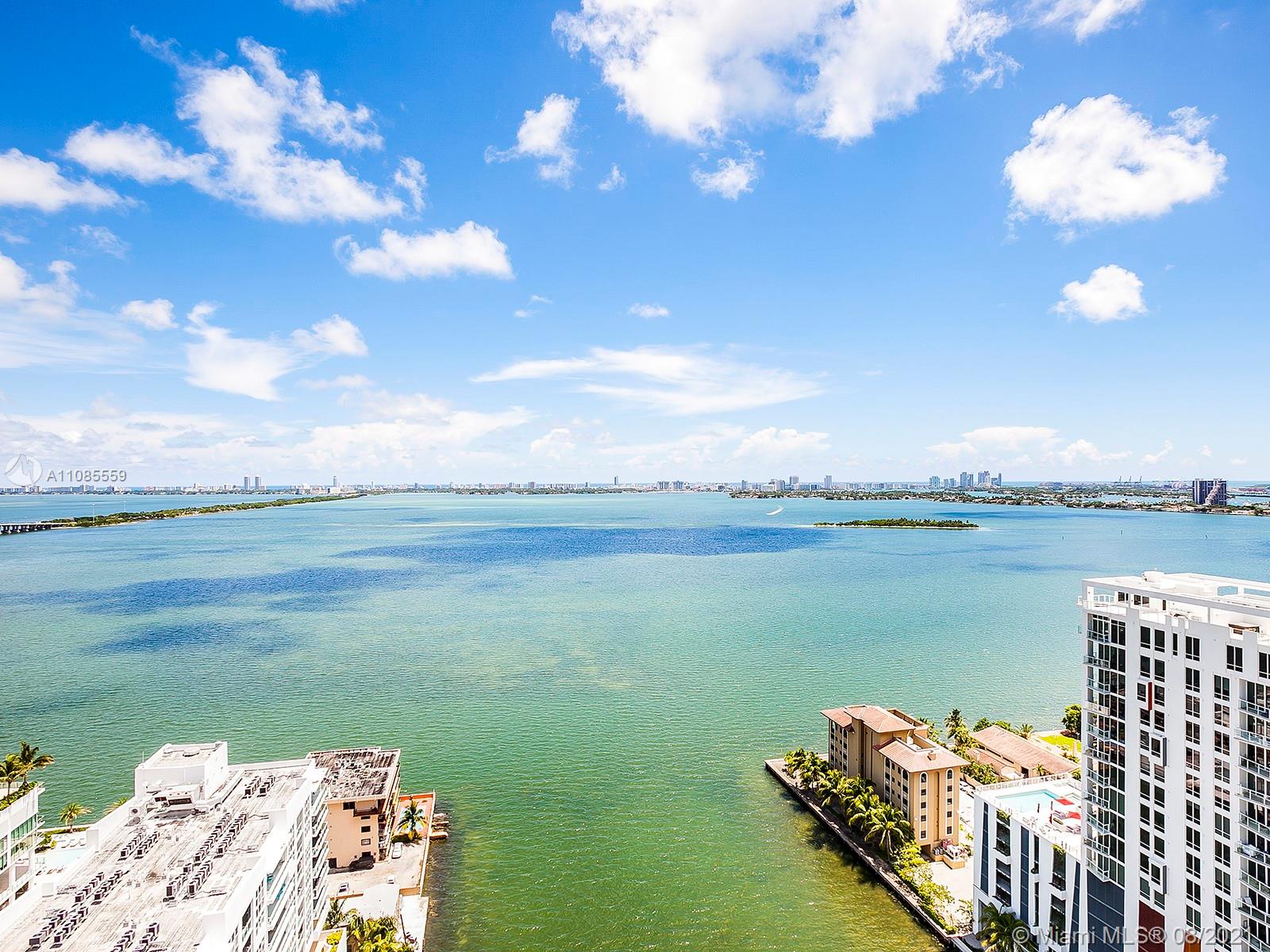 Spectacular direct bay views from this large 2 bedroom, 2 bathroom, plus a den/dinning room, in Edgewater's Icon Bay. Enter directly from the elevator, into the units private foyer, and enjoy its 1,300 sqft of open floorplan and all of its modern finishes, including automatic shades and blackout shades, quartz counter tops, and porcelain wood floor tiles. Relish in the building's resort-like amenities, which include an infinity pool, tennis courts, fitness center, game room, paddle boards for the bay, and much more. The unit includes one assigned parking space and additional parking can be arranged.