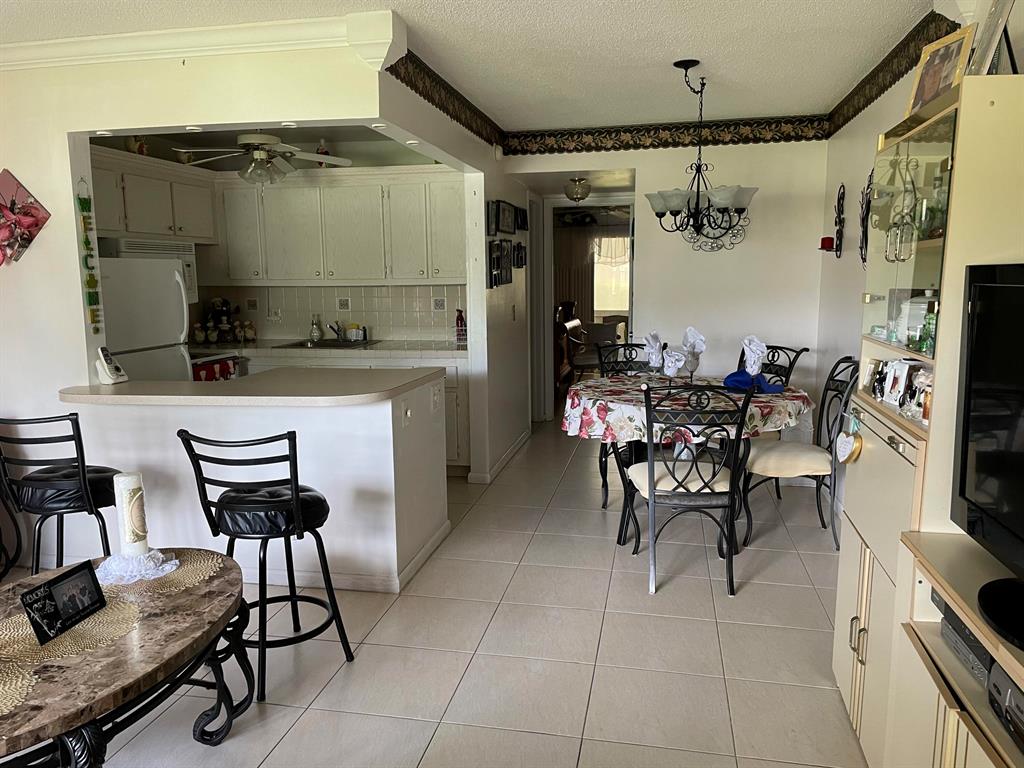 Very active 55+ community. Comfortable and convenient ground floor unit near the fitness center and pools. Kitchen has been opened to dining room and living room. Cable is free including HBO and STARZ included in maintenance fee. Unit is tastefully furnished for your convenience. Bus service, movies, classes and clubs to enrich your life. Come for a visit and you will want to stay.