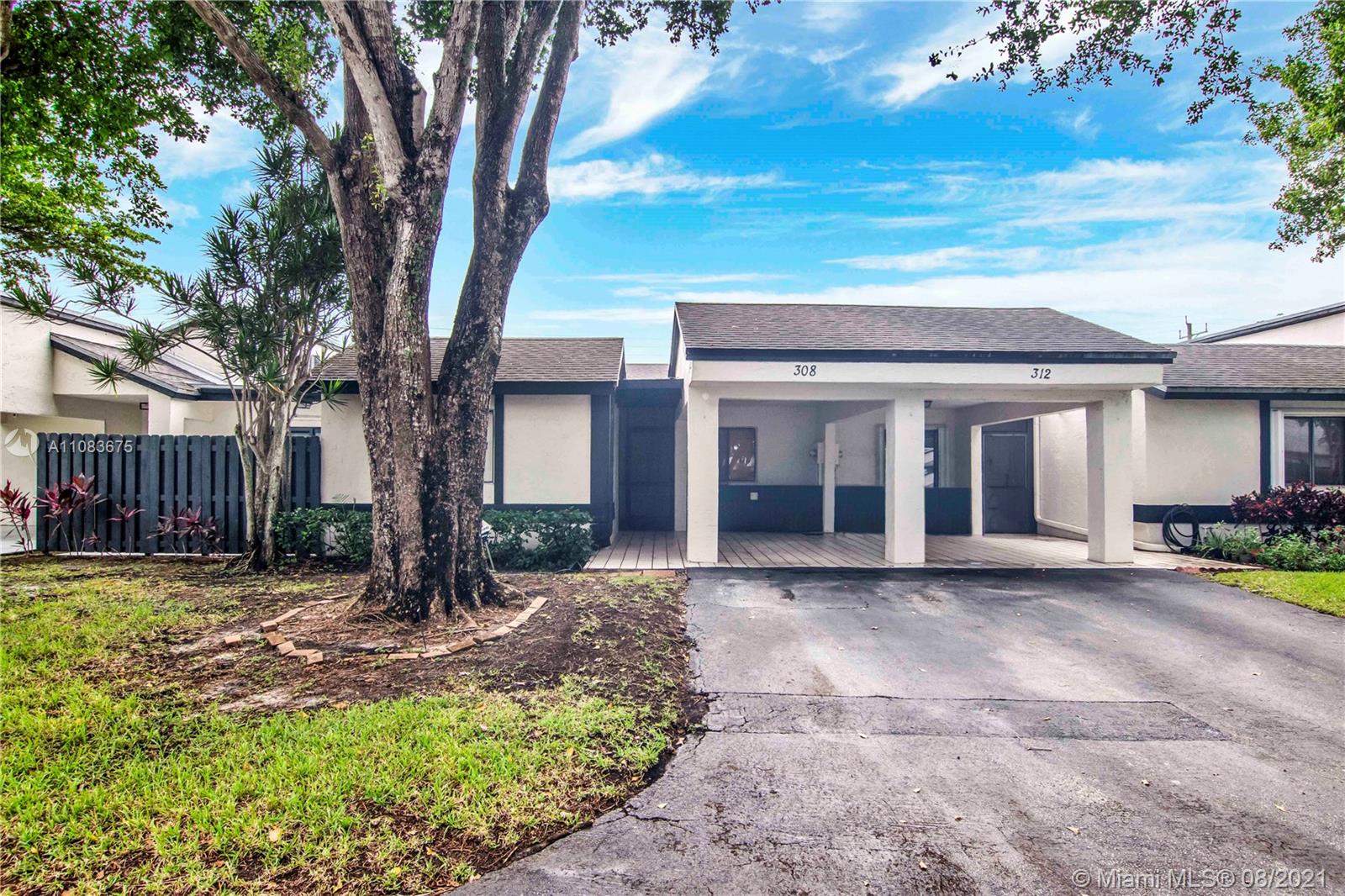 Beautiful home in the city of Weston. Mint Conditions 3/2 Villa. Ceramic and laminated floors through out. High Ceilings, Wood Kitchen Cabinets. Stainless Steel Appliances. Breakfast nook. Covered Patio with Fountain View. Carport for 1 Car plus 1 driveway w/built in shed for storage. Access to the Town Center Club with all amenities. Great master bathroom w/ double sinks, separate shower, and large tub. Huge 2nd bedroom with 2 closets, sliding glass door leading to the patio. Community pool in neighborhood and access to the Bonaventure Town Center Club which includes many additional amenities. Basic cable & Internet included in maintenance. Association requires 10% down payment. Great schools. Probate case finalized.