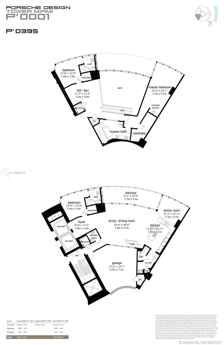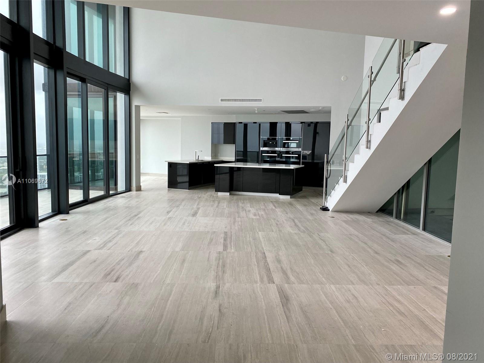 Exclusive one of only 16 duplex residences in the Porsche Design Tower. Completed with marble flooring, living & summer kitchen area, double ceiling living room & balcony, dining room, separate TV room on the 2nd floor, 2 private elevators, 542 SqFt of private sky garage with 2 parking spaces attached to the unit accessed by high tech car elevator, Miele appliances including wine cooler, induction cooktop, speed-microwave oven and warming drawers. Automatic Toto toilets with integrated bidet functions. Amenities: Oceanfront gym & spa, pool & beach service, restaurants, theater, virtual golf, 2 race car simulators, private wine lockers, 24h valet, 24h exclusive concierge services and more.