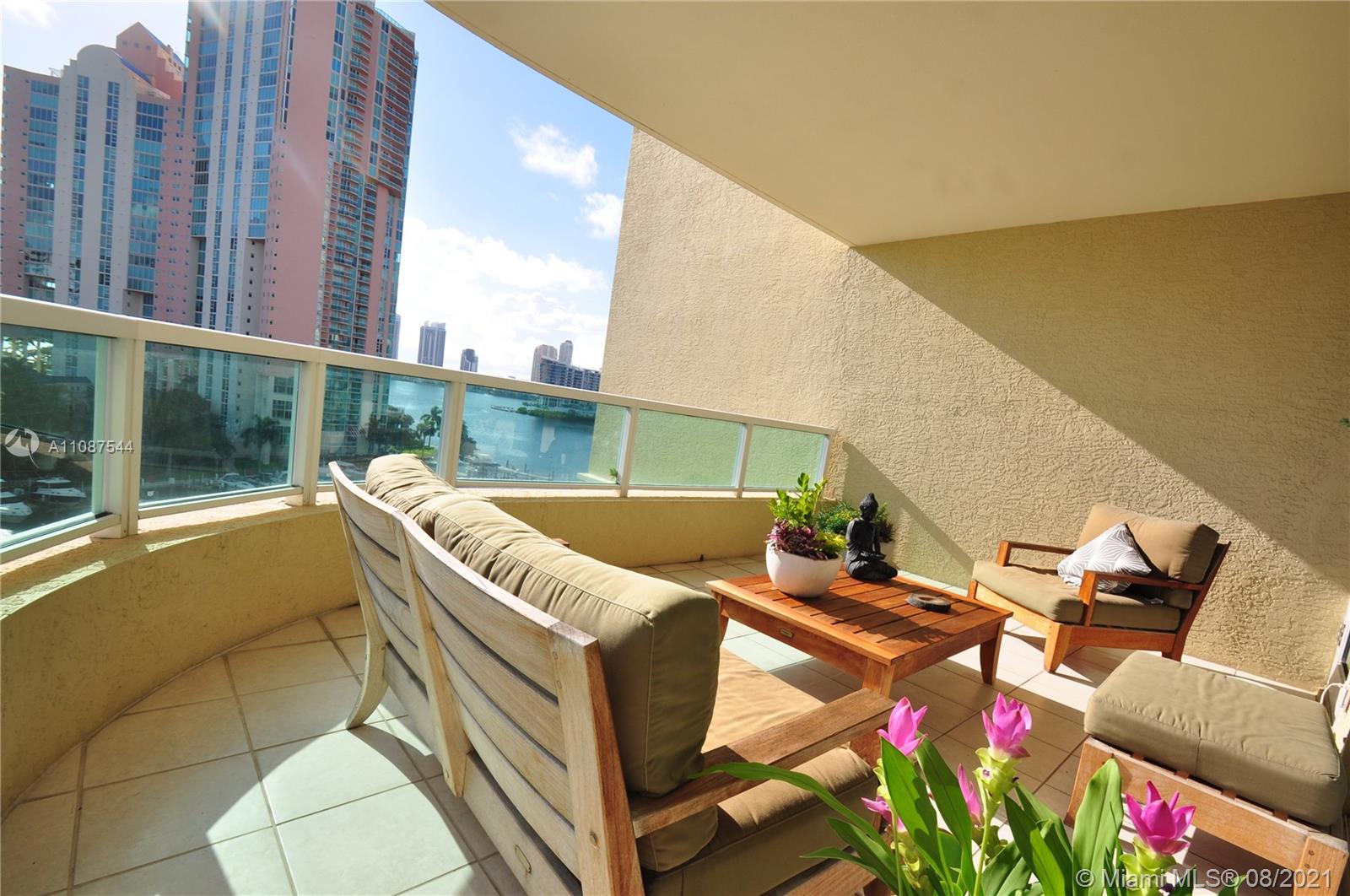 Split floorplan with 2 bedrooms, plus Den and 3 full bathrooms. This unit is the only one in the building with 2 TERRACES facing East and West. And also has a STORAGE UNIT on the main floor. Hardwood flooring throughout the living and dining area, granite countertop, and stainless steel appliances. Aventura Marina is walking distance of the Aventura Mall and fine dining and shopping. The building offers all amenities you will need. Please TEXT listing agent with all your info to make an appointment. 24 hr, notice.