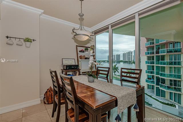 Beautiful 1/1 with lovely intracoastal views in high end luxury building.Marble floors throughout, large closet with built ins, separate dining area facing gorgeous view, only 2 apartments on the floor. Tons of light with large sliding doors and big windows.Fantastic 2 story fitness center, tennis courts, close to Founders Park, Aventura Mall and 5 minutes to the beach. Currently occupied by tenant who will stay or go with 45 day notice.