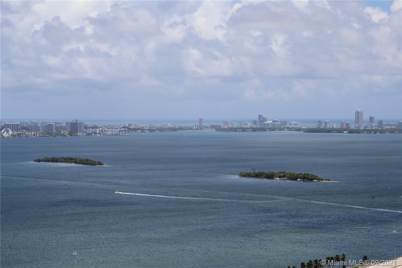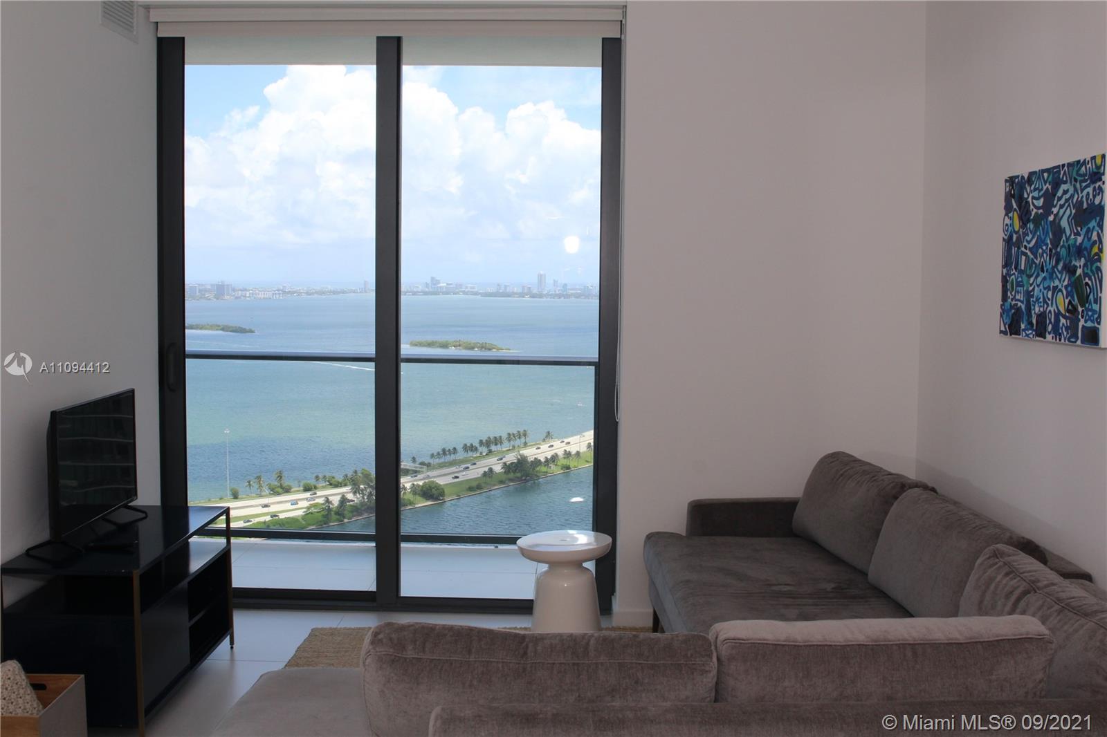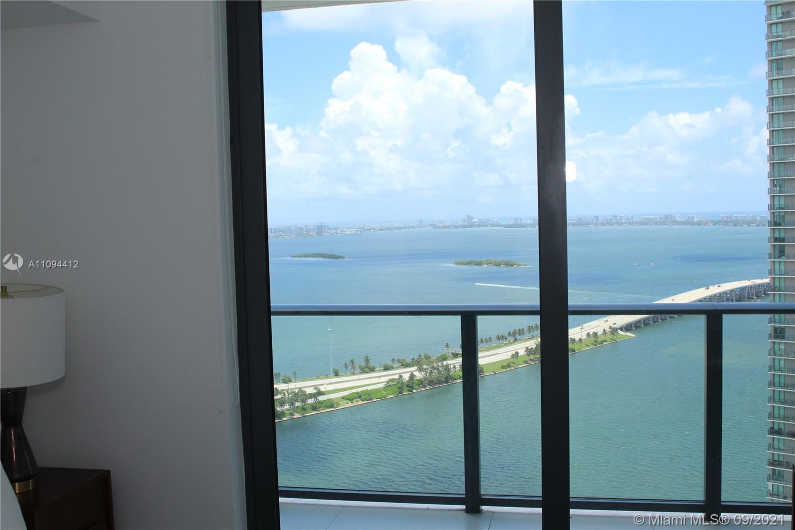 Priced to sell, unit with direct views to the Bay and the Ocean. Beautiful finishes, Italian porcelain tile throughout, Italkraft kitchen cabinets, BOSCH appliances, excellent layout, King size bed in the bedroom, ample terrace. Building features incredible designer finishes by renown Karim Rashid including: tennis court, pool, cabanas, BBQ grills, lounge beds, spa, sauna, treatment rooms, state-of-the-art fitness center, multimedia room, billiards, kids room, club room and STUNNING 46th floor pool deck and hot spa with amazing views. Unit rented until December 2021 at $2250 per month. Tenant could move out with 45 day notice.