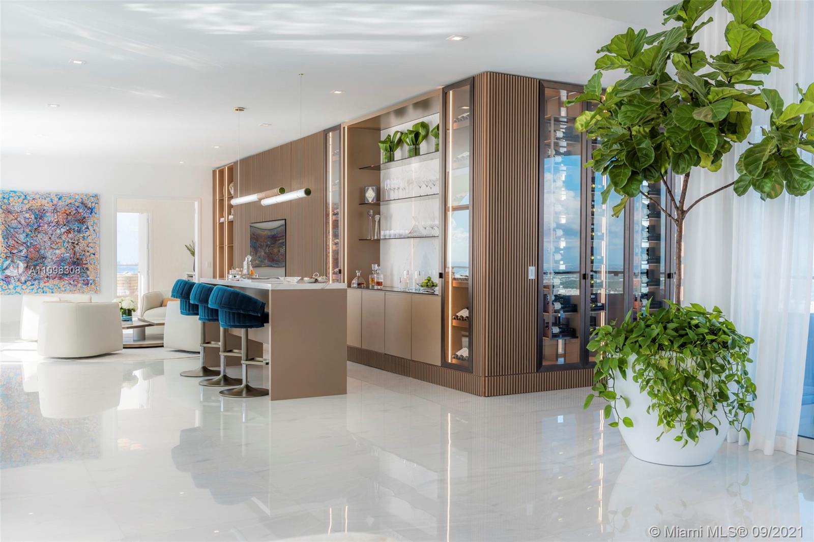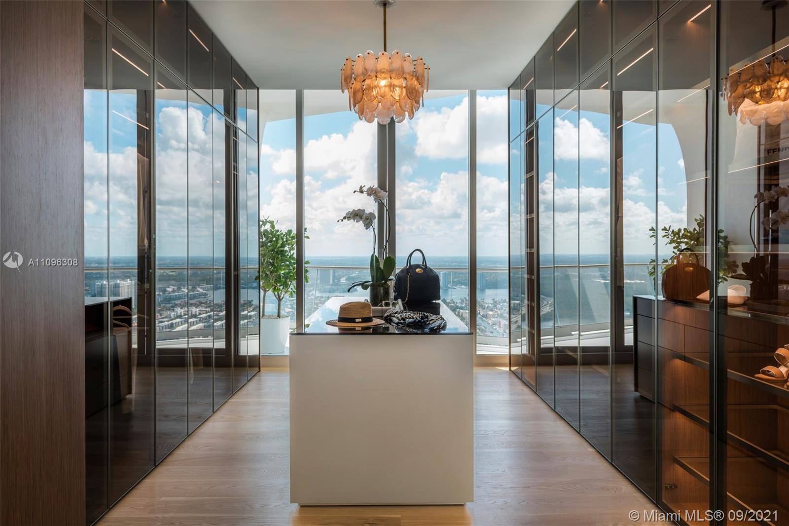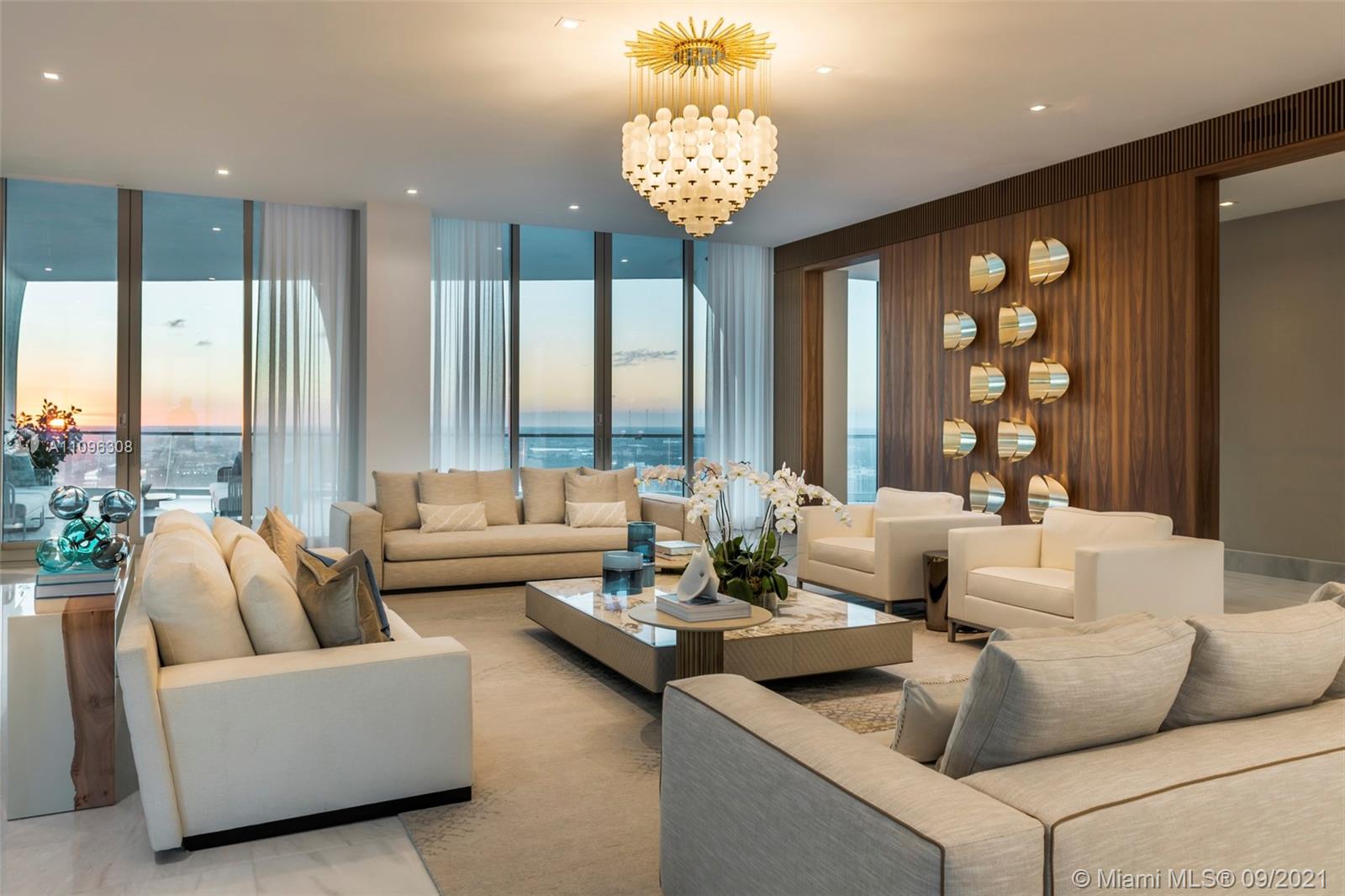 One-of-a-kind two-story Signature Upper Penthouse with 360° striking views. 12ft ceilings throughout and over 7,500 of a wrap-around balcony and an oversized jacuzzi overlooking the ocean. Stunningly furnished and ready to move in with just your toothbrush! Up to 7 bedrooms/9.5 bath, 2 level master bedroom with private gym, sauna, steam + jacuzzi bath overlooking downtown Miami, the ocean + intracoastal. A palace in the sky!