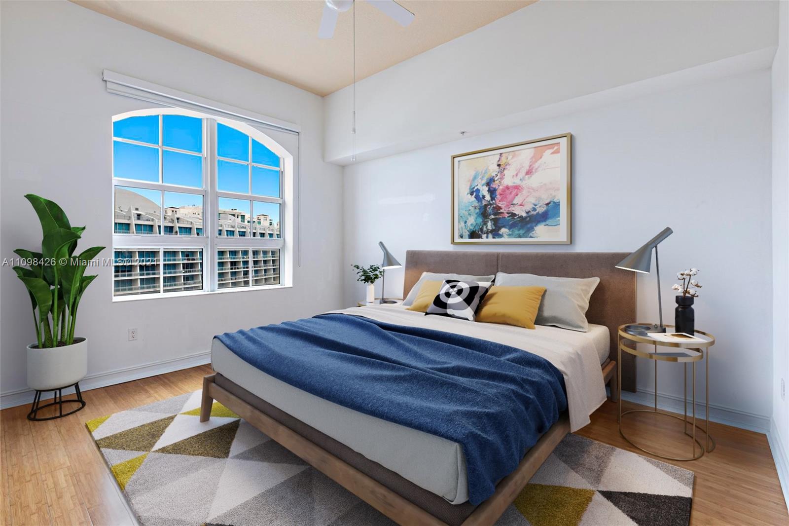 Best line, rarely available. Beautiful Top floor 2 bedroom 2 bath with open layout, 12 foot ceilings and a large covered terrace overlooking the water. Freshly painted. Brand new water heater and brand new AC. Washer and dryer in unit. 2 covered parking spots and a huge Storage room located on 6th floor. Alaqua offers 5 star amenities: a newly renovated waterside dock, state-of-the-art fitness center overlooking the water, hot tub, pool, playground, business center, 24-hour security, valet and more. Just a short walk to Aventura Mall, Publix, restaurants, and beaches. A+ rated schools and Brightline station at Aventura Mall to make travel even easier. Easy to show.