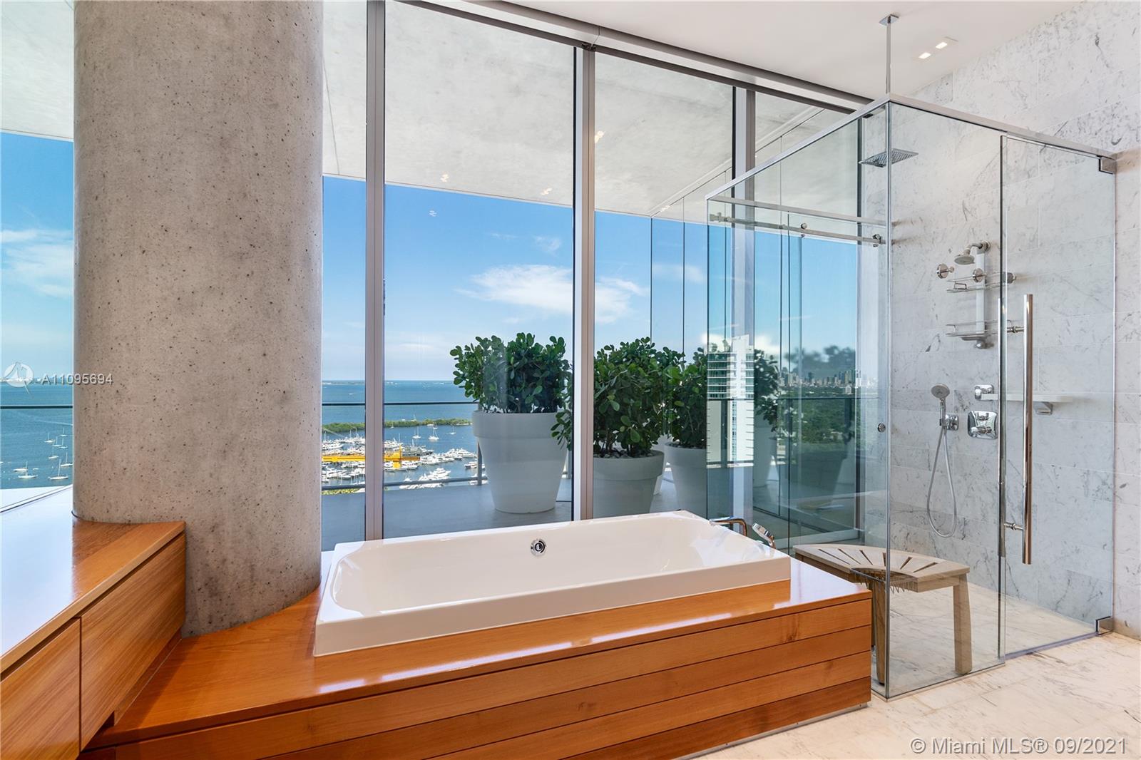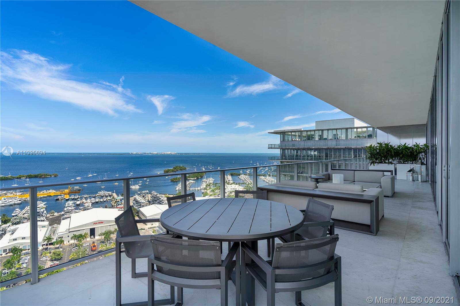 A true one-of-a-kind Penthouse in the dancing towers of Grove at Grand Bay. Enjoy sweeping views of Biscayne Bay and the city of Miami from every picture window. Awe-inspiring bespoke finishes in this unique Penthouse include an integrated glass TV in the wall, a custom elevator lift with access to your private pool and outdoor patio, walk-in temperature-controlled wine cellar that houses your finest wine and spirits collection, plenty of built-in closet and storage space, custom imported wood floors, sleek Italian kitchen cabinets and living spaces suited for the most discerning individuals. This private residence lends itself to year-round entertaining or cozy nights at home with loved ones.