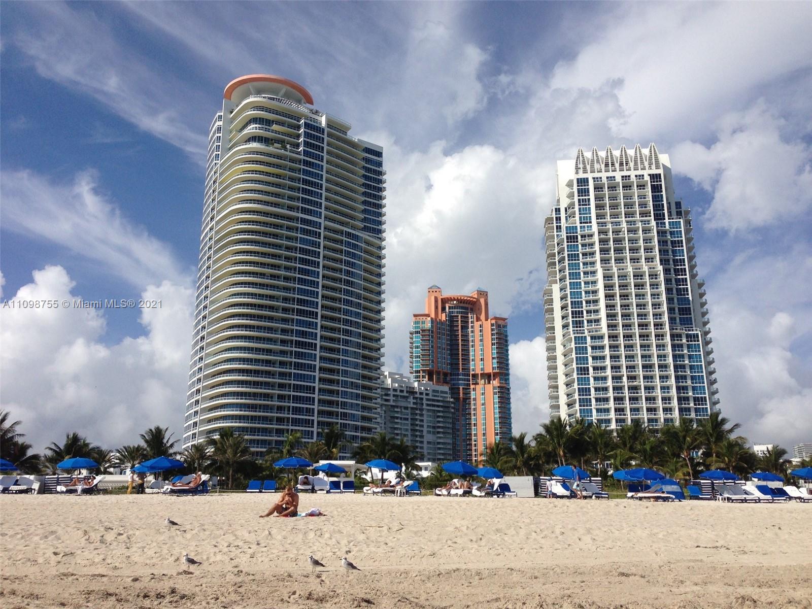 Enjoy the most beautiful Miami Beach views, parading cruise ships passing Fisher Island and vistas all the way out to the port of Miami and Downtown skyline sunsets. Unit 1005 features a private lobby, formal living + dining rooms. 2 Bed 2.5 baths with 2 Balconies and one terrace for outdoor entertaining plus storage/laundry room. Continuum is a 13 acre, private beachfront oasis with amenities and attention to its residents second to none. Private restaurant and beach club, 3 har-tru tennis courts, 3 story gym/spa/salon plus 3 pools. Real Luxury Living in South of Fifth.