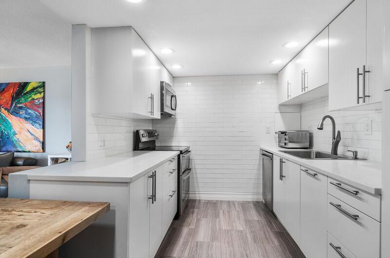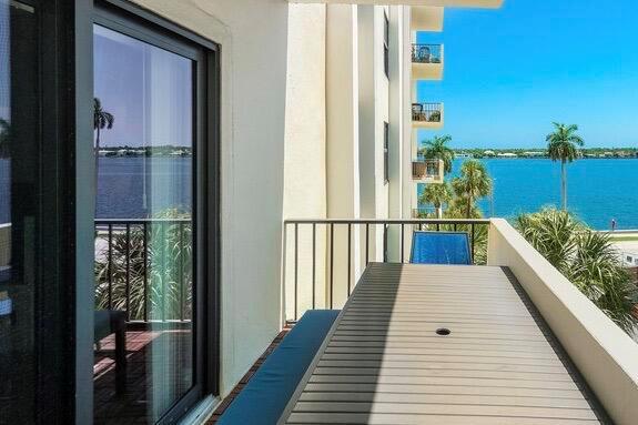 Move-in ready 2BR/2BA, 1,100 sq ft condo, 5th floor, southern exposure; panoramic views of Intracoastal from spacious 6' x 13' balcony; building is across from the soon-to-be completed LA CLARA high rise. Recently renovated; open floor plan; beautifully updated kitchen, quartz countertops, 4 year-old GE high quality appliance package, 33'' stainless steel sink; all new faucets and water valves; A/C, carpet & vinyl flooring (2017); on-site manager; secure entry, security camera system; heated outdoor pool; assigned parking; lease permitted (1x/yr, 6-Mo min); extra storage.Waterfront bldg; walk or bicycle to downtown WPB, the Green Market, Rosemary Square & Norton Museum; close to beach & Palm Beach's Worth Avenue; Palm Beach Public School District;