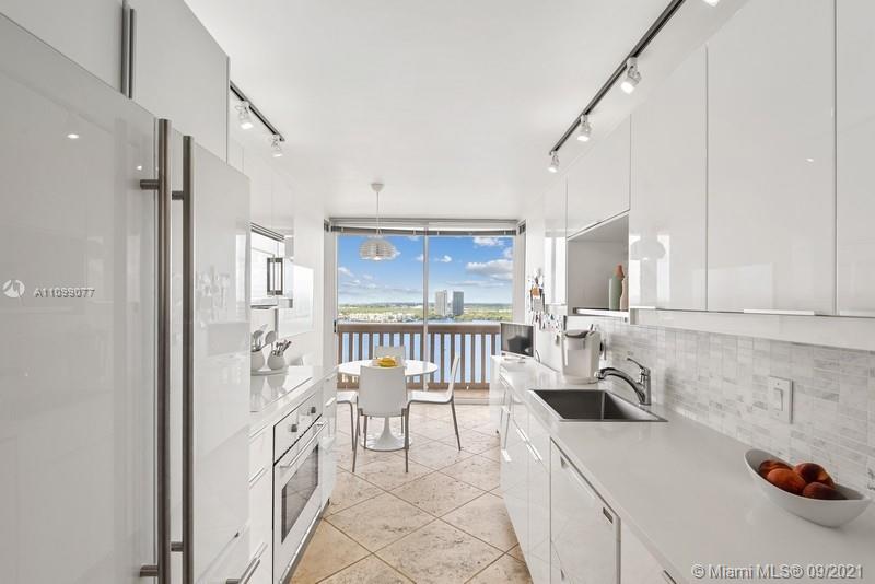 Looking for a spacious 3 BR/2.5BA condo, currently set up as a 2BR with den in Williams Island? This 1900sf art collector’s remodeled home with 180 degree sweeping water & skyline views might be your perfect choice. The main living areas & balconies feature Tuscan Saturnia Stone floors, smooth ceilings, track lighting & floor to ceiling views. The kitchen features a glass door refrigerator, a Fisher Paykel double drawer dishwasher & soft close drawers with pullouts. Owners may park their cars or use valet. This 84 acre paradise offers the consummate lifestyle featuring a 27,000sf spa with classes, an indoor swimming pool, a 16 court tennis & pickle ball club, 3 restaurants, a deli, a children’s playground, walking paths, an onsite marina & more. Tranquility in the heart of the city!