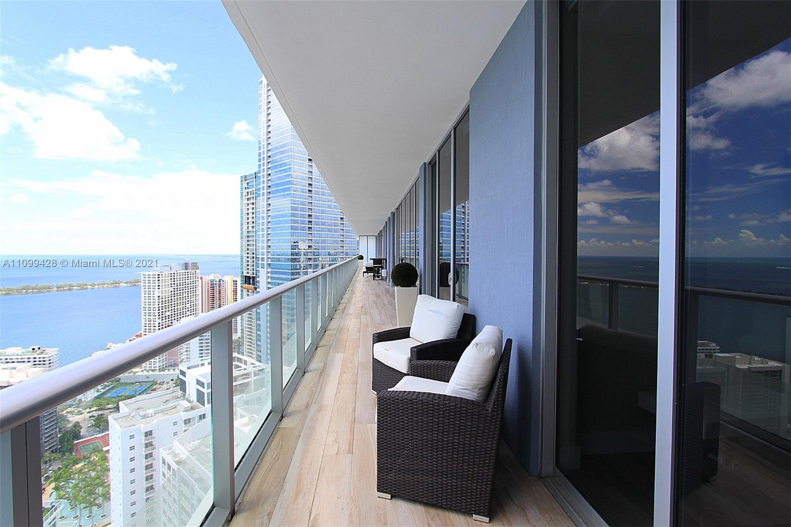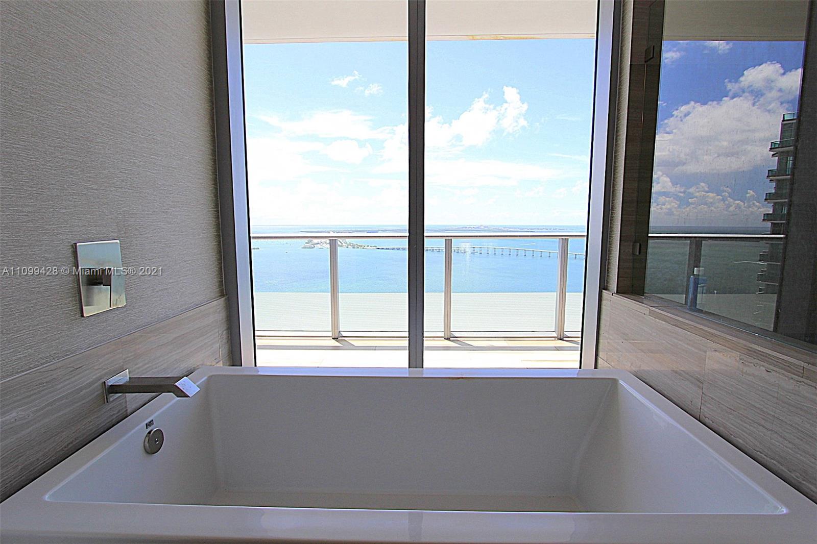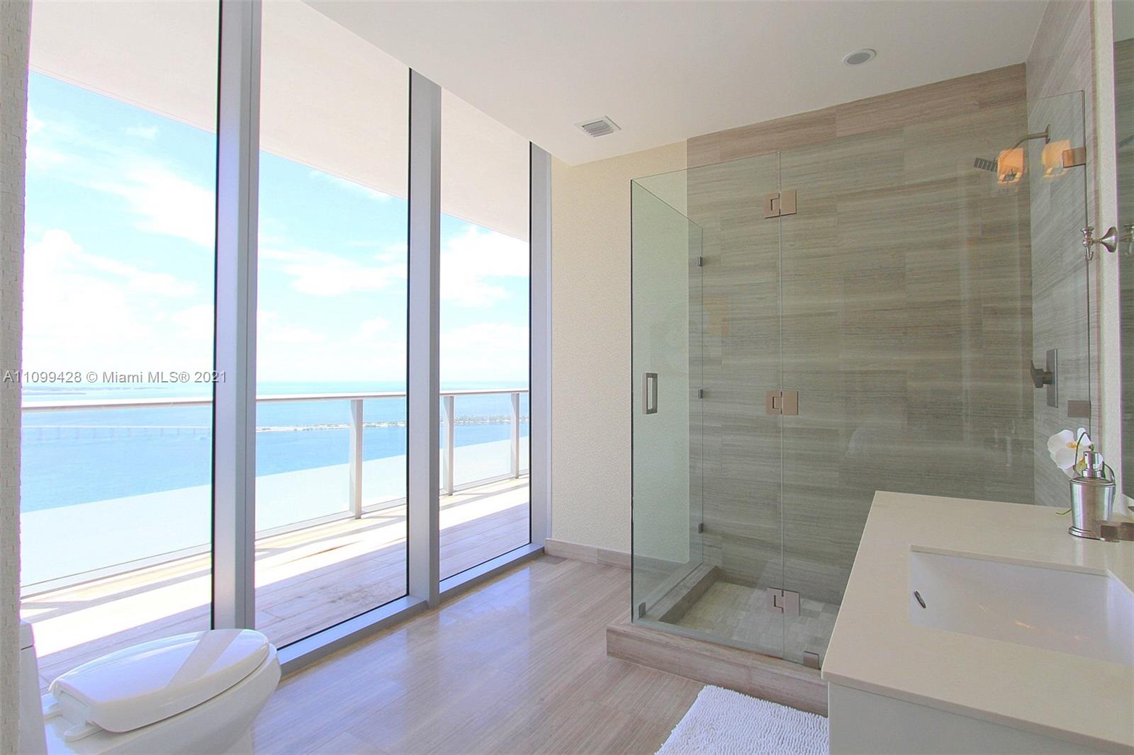 Sweeping & unobstructed water views from this 43rd floor penthouse located in the Brickell House Condo! Built in 2014, this magnificent high rise offers high end amenities which include 2 pools, gym, spa and valet service. Double main entry way foyer leads you to an ample and open main living area with floor to ceiling glass throughout. Water views can be had from almost all areas of this unit. Split floor plan provides a well-appointed master suite including enormous walk-in closet, master bathroom with soaking tub, separate shower and double sink vanity. Maids quarter next to laundry area. Balcony spans the complete length of unit with access points from all rooms. This is a one of a kind unit not to be missed!