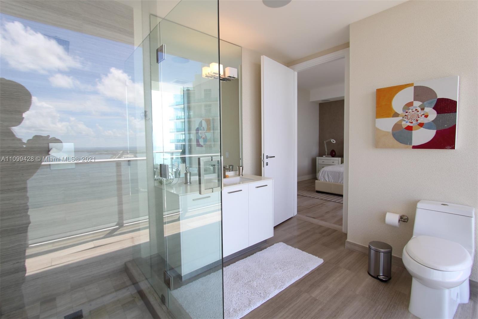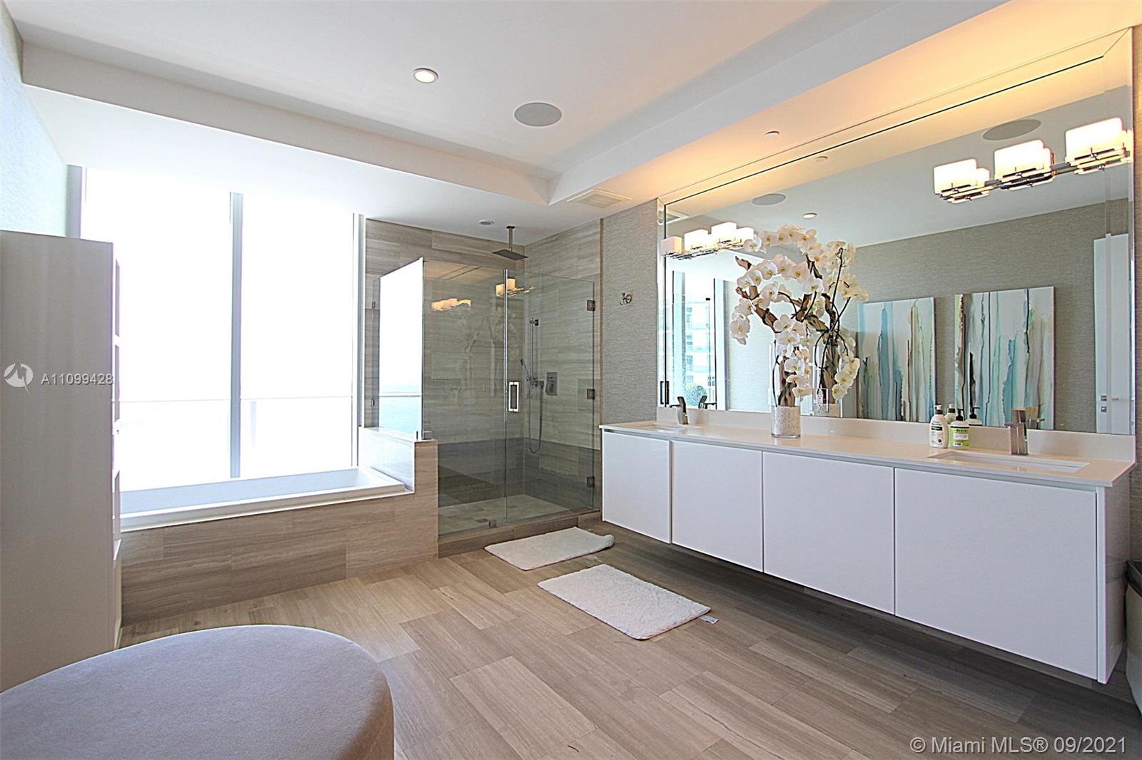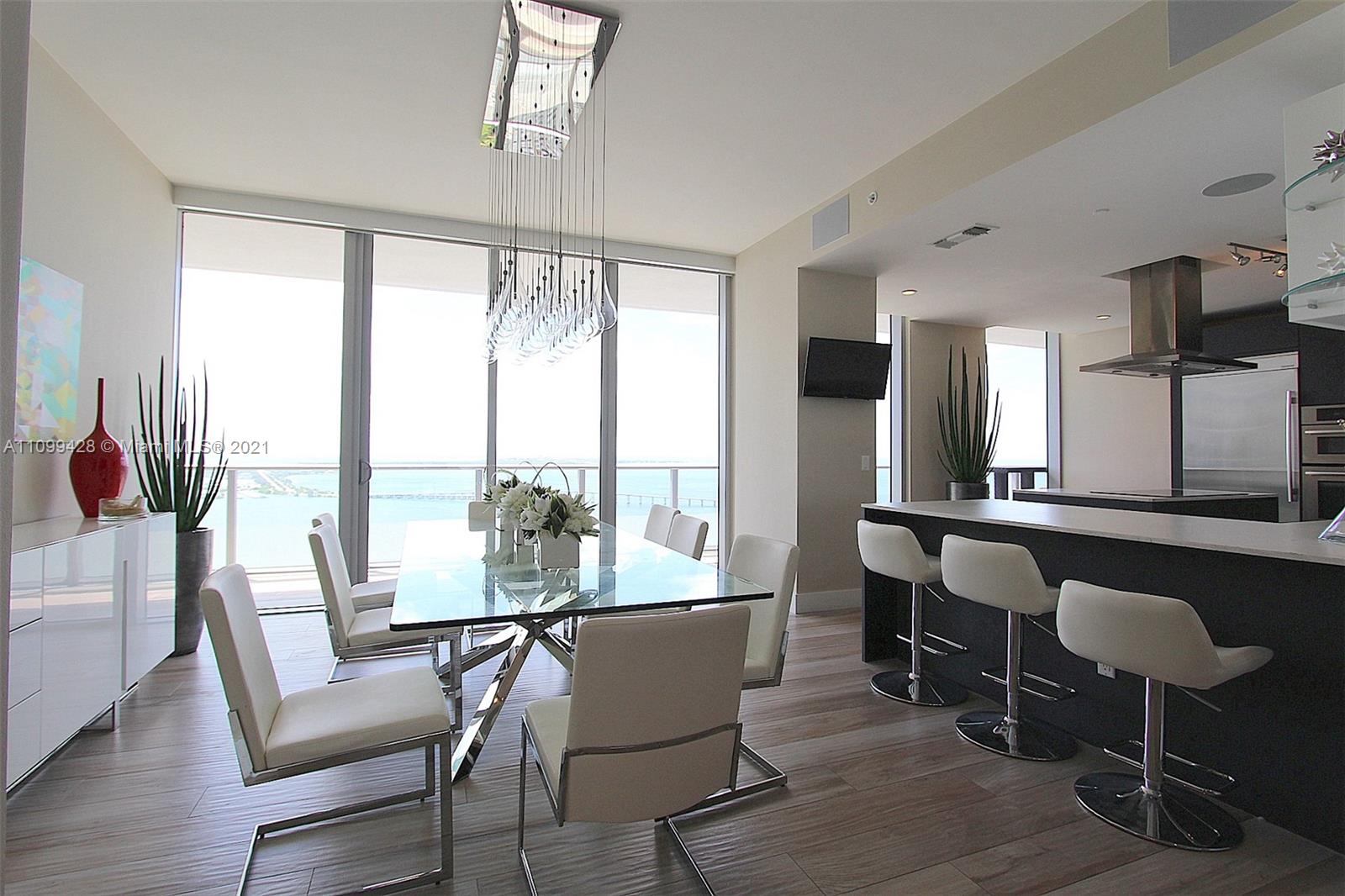 Sweeping & unobstructed water views from this 43rd floor penthouse located in the Brickell House Condo! Built in 2014, this magnificent high rise offers high end amenities which include 2 pools, gym, spa and valet service. Double main entry way foyer leads you to an ample and open main living area with floor to ceiling glass throughout. Water views can be had from almost all areas of this unit. Split floor plan provides a well-appointed master suite including enormous walk-in closet, master bathroom with soaking tub, separate shower and double sink vanity. Maids quarter next to laundry area. Balcony spans the complete length of unit with access points from all rooms. This is a one of a kind unit not to be missed!