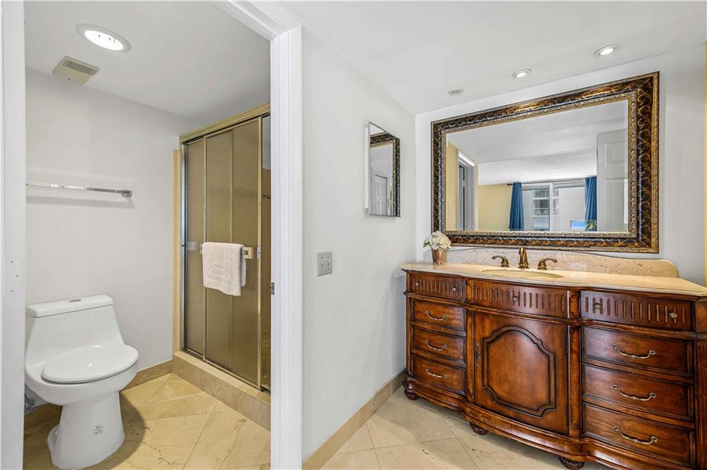 2 bedroom 2 baths unit with an ocean and pool view from every room. This unit has a split convenient floor plan, it is like having two master suites. All marble floors throughout the unit, kitchen and bathrooms remodeled. Laundry room with washer and dryer. Hurricane Impact Windows, balcony has accordion shutters, Plenty of guest parking. Heated pool, Jacuzzi, BBQ area, Billiards, TV room, lounge chairs on the sandy beach, Internet and basic cable is included . 24 hours security guard. Close to shops and restaurants. Come and Enjoy South Florida at its best