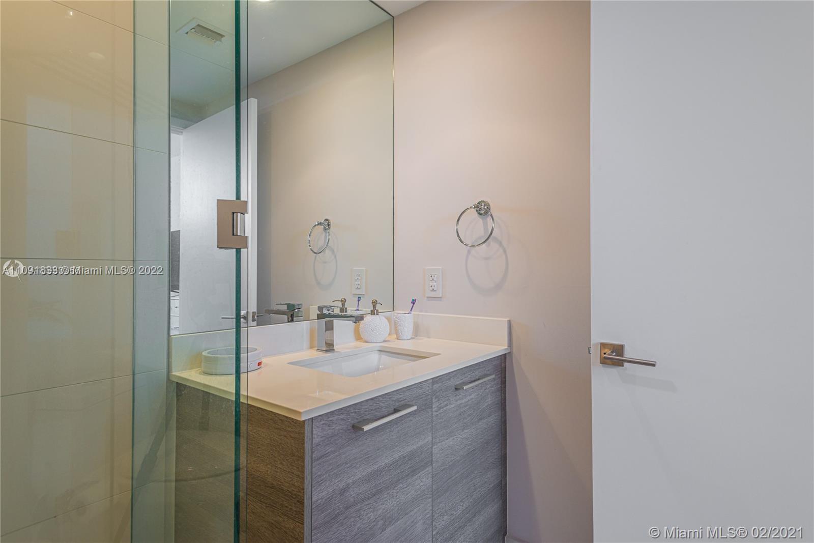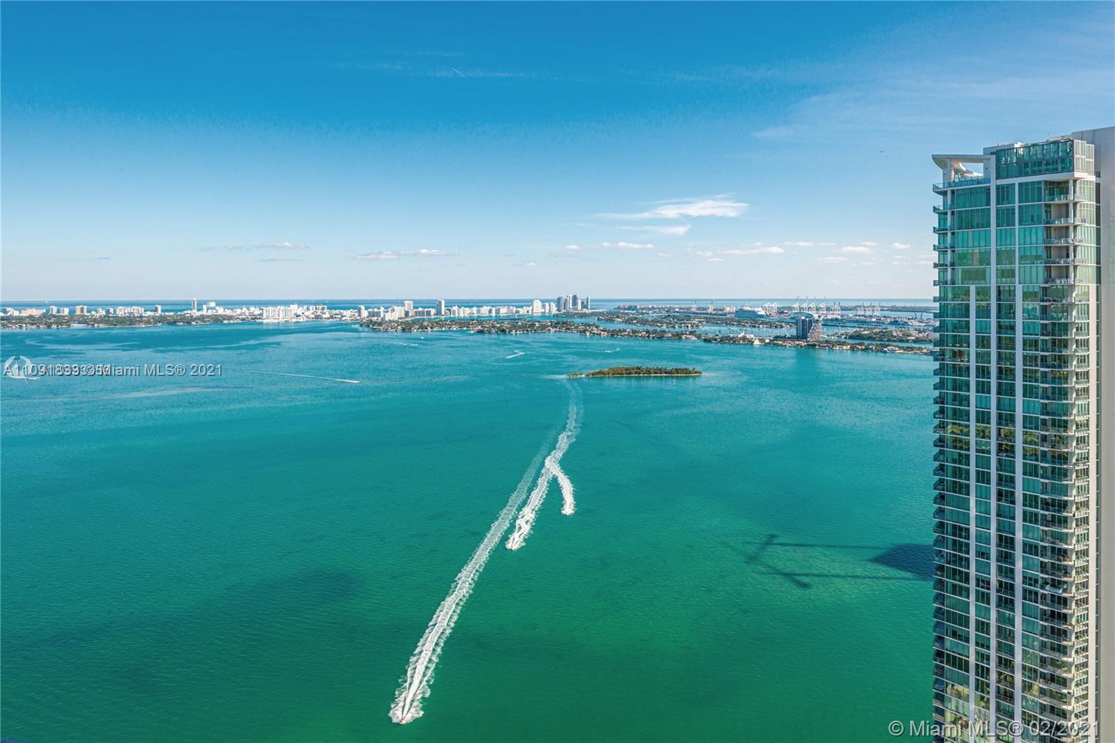 Breathtaking Bay and City Views from the 49th floor of this 2 bed /3 bath plus DEN. Private entry elevators, floor to ceiling glass panels & 9 foot ceilings. Italcraft cabinetry featuring Wolf and Subzero appliances and wine cooler. Paraiso Bay is a luxurious building in a great location, 5 min away from Design District and Midtown Miami. This exclusive condo offers amenities such as Resort-Style Pool, Luxury Health spa with sauna, steam room, Party Room, Gym, Jacuzzi, Cinema, Tennis Courts, Pool side Cabannas and much more. Tenant Occupied, please call listing agent. 24HR advance notice.