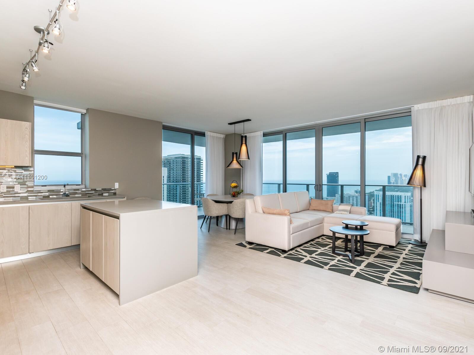 BUYERS DREAM BUY IT RENT IT OR USE IT. WOW ! WHAT A VIEW> HIGH ABOVE EVERYTHING AND EVERYONE DIRECT OCEAN 2 BR 2 BATH PENTHOUSE CORNER WRAP AROUND 45 FT TERRACE,OCEAN INTRA & CITY VIEWS> NORTH/SOUTH/EAST & WEST FOR YOU TO ENJOY SUNRISES/SUNSETS/BOATS/PLANES SEE IT ALL! FURNISHED & ACCESSORIZED READY TO USE AS RESIDENCE,VACATION PARADISE, RENT IN HOTEL PROGRAM OR AIRBNB *GREAT RENTAL INCOME* THIS UNIT HAS IT ALL! STATE OF THE ART DESIGN,VIEWS, LOCATION & 5 STAR COMPLEX *BEACH CLUB & SERVICE/BAR,2 POOLS, LAWN AREA,BBQ,OUTSIDE MOVIES, SNACKBAR,REST'S,TENNIS, RACQUETBALL/BASKETBALL,SPA,FITNESS, BUSINESS CENTER/PARTY ROOM *BEST FOR LAST 42ND FL PRIVATE OWNERS CLUB,TERRACE, BBQ'S, GAZEBO, JACUZZI, INTERIOR LOUNGE TV'S/LIVING/DINING AREA! PERFECT TIME TO BUY "FORMULA ONE AND ART BASEL COMING *