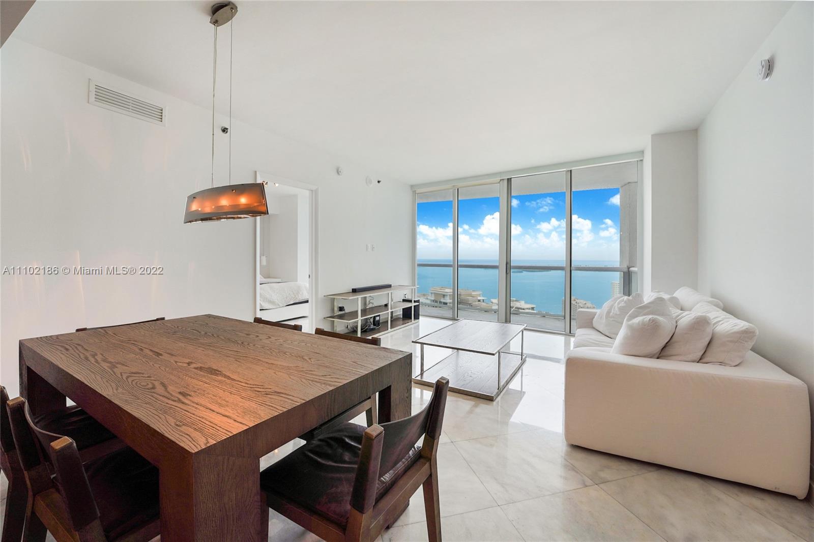 Amazing price in the highly desired "07". Breathtaking views from this impeccable 2 bedrooms + den/ 2 bathrooms. Direct views on the Bay, Brickell Key and Port of Miami from the 40th floor. Unit features white marble floors, electric black out shades in every room and California closets. The amenities include, 24 hr front desk service, valet, high end spa, fitness center, infinity pool on-site restaurants and more.