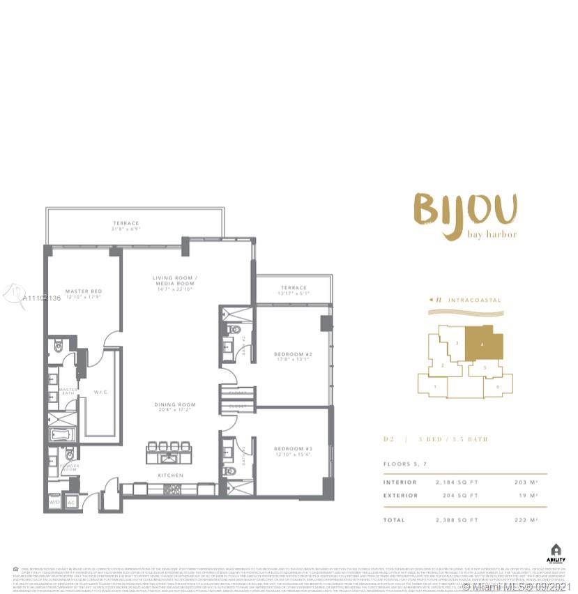 THIS IS THE BEST UNIT IN BRAND NEW BIJOU Bay Harbor. Be the first to live in this large SE corner with spectacular unobstructed bay views, partially furnished and ready for occupancy. Spacious 3 bd/3.5 bth with many upgrades including imported built in closets, custom pantry, MIA Cuccina kitchen, and Wolf appliances. Assigned self parking space + valet, and private storage. Magnificent architecture by renowned Revuelta Architecture International and the bold interior design of Adriana Hoyos. Walk to the beach and Bal Harbour Shops. Docks available, and a spectacular roof top pool lounge with incredible bay and ocean views. Best location in Bay Harbor Islands. A MUST SEE!