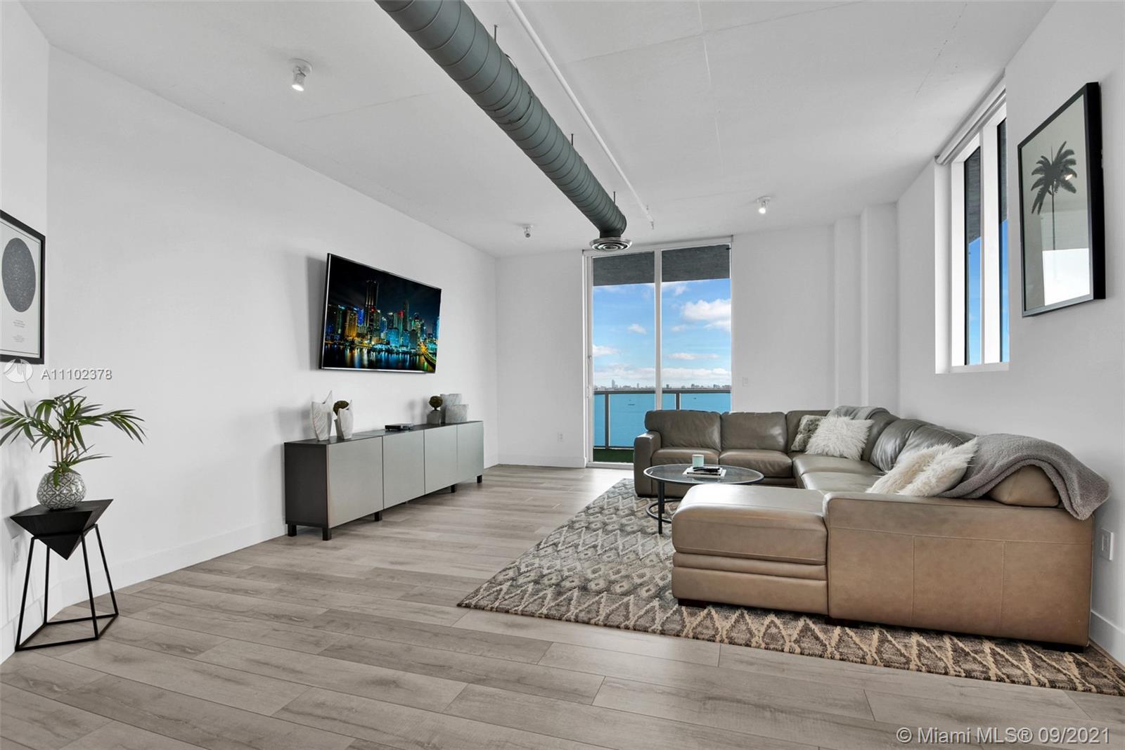 Enjoy stunning views from this south-east, remodeled two-bedroom, two-bathroom, corner residence. The expansive terrace showcases water views in all directions. Only three residences per floor. Over $70,000 was invested in this apartment. Some of the upgrades include a new backsplash, Sub-Zero refrigerator, and a new dishwasher in the kitchen. New vanities, seamless glass shower doors, New tankless water heater, and a completely new AC unit, New floors, and baseboards throughout, blinds throughout, California built-in closets, and an intelligent lighting system.Faux grass on both balconies. Amenities were completely redone. Fitness center, gorgeous pool area, dog park, conference, and lounge areas are brand new. Located minutes from Downtown, Miami Beach, Design District, Midtown.