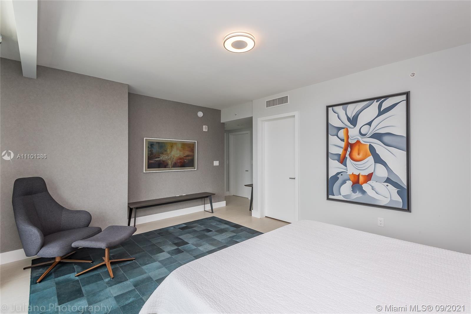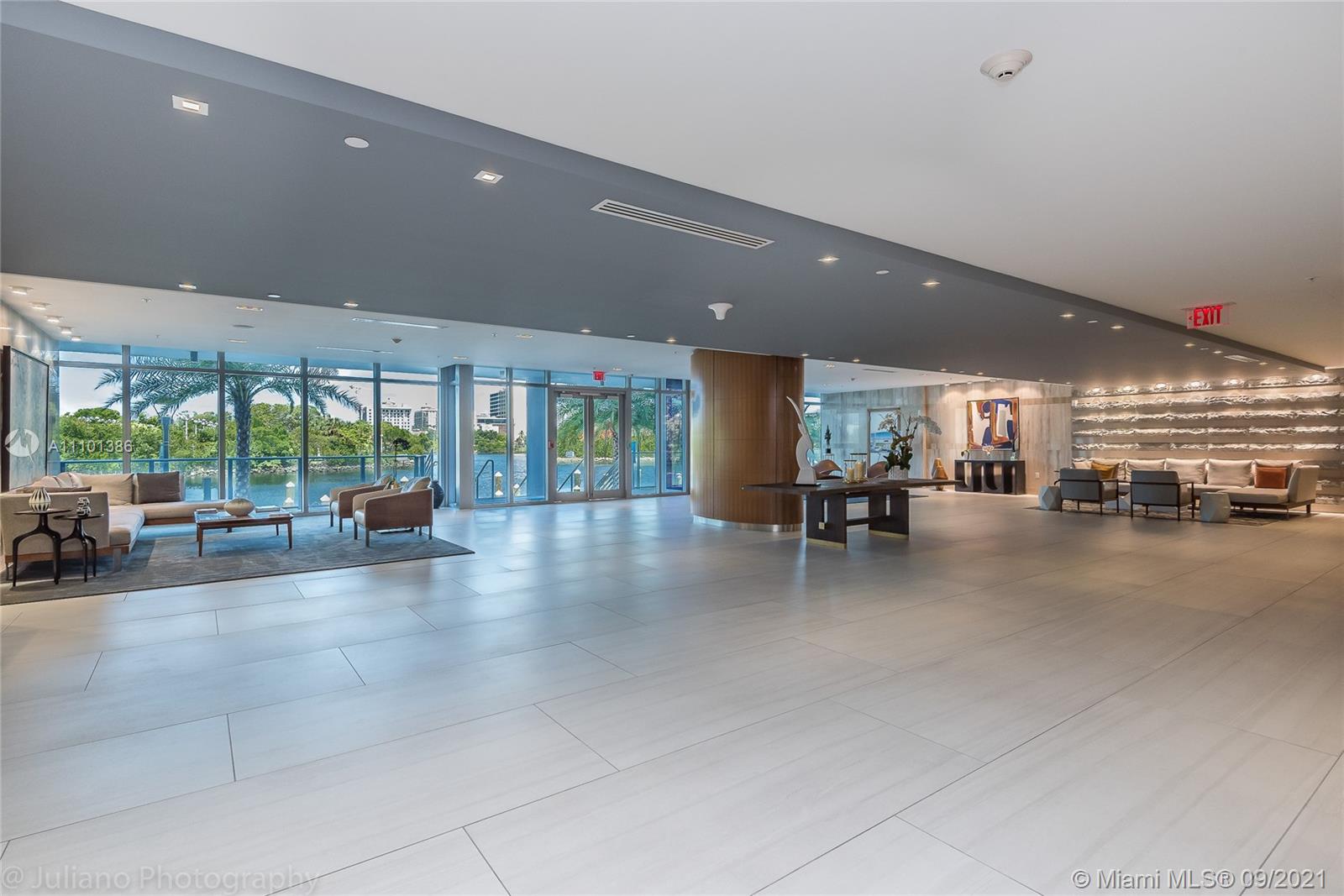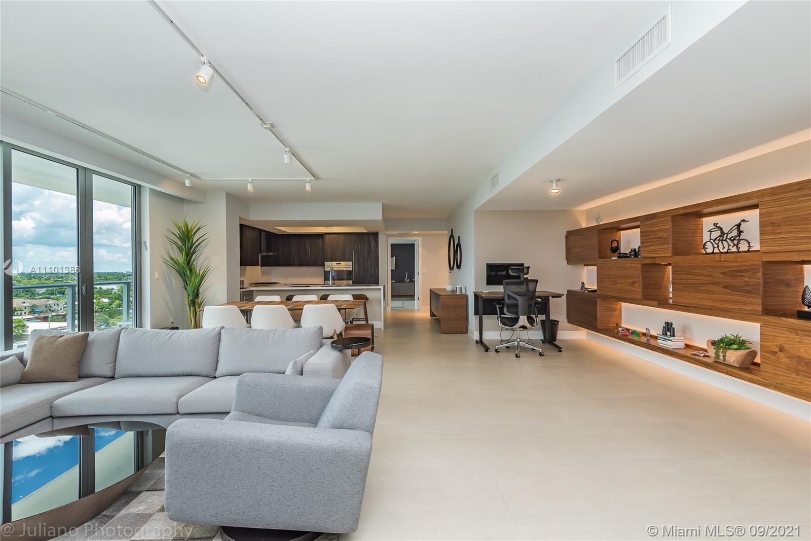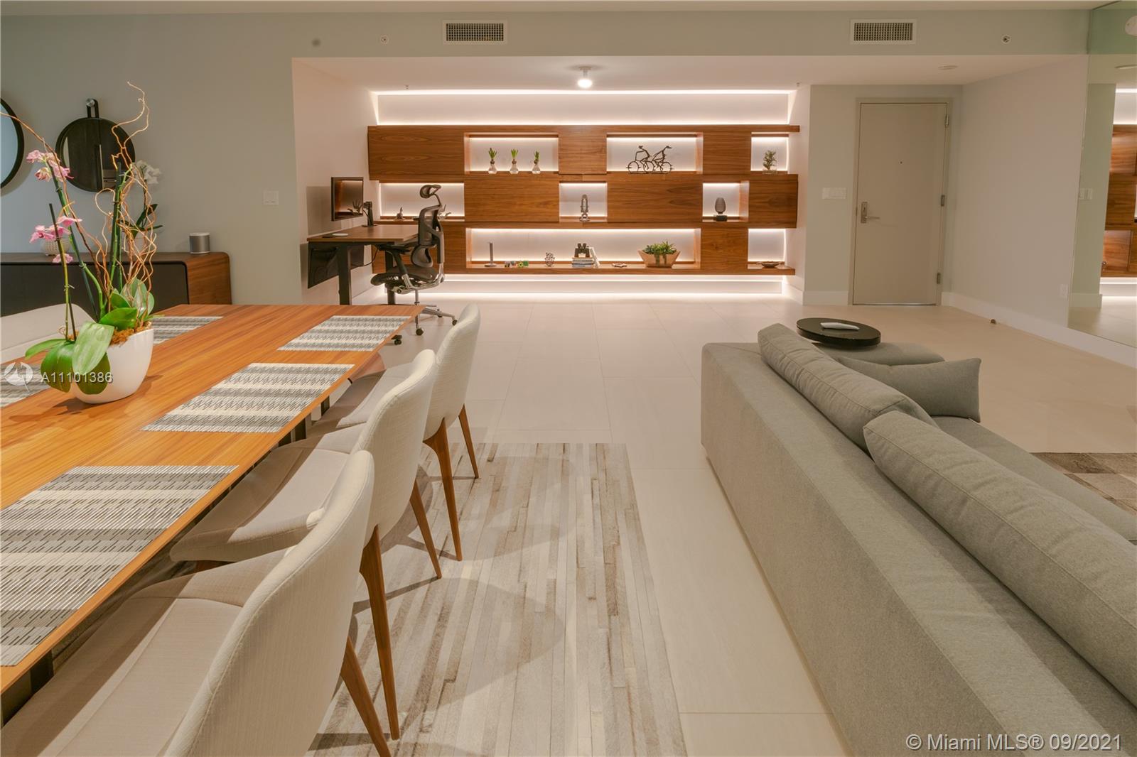 Designer ultra high end 2/2.5 + office area. Custom furniture & builtins in each room. 24x48 tile, impact windows, high ceilings & huge 70ft balcony with built in BBQ. Kitchen has Wolf wall ovens, gas range, quartz counters, Sub zero refrigerator, bar area & wine cooler. Custom wall treatments, walnut floating wall units, picture frame hidden TVS, SMART features- Phillips Hue smart lights turn on as enter room, Somos speaker system, Nest A/C, electric blinds & more. Decadent master suite has big walk in closet, master bath with 2 quartz vanities, large shower & separate tub. Other features: endless sunset views, laundry room w sink, 2 parking, kayak storage & storage unit. Resort style amenities include 7000sqft gym, spa, kitchen, pool, Jacuzzi, & docks on waterway. 2191sqft see floorplan.