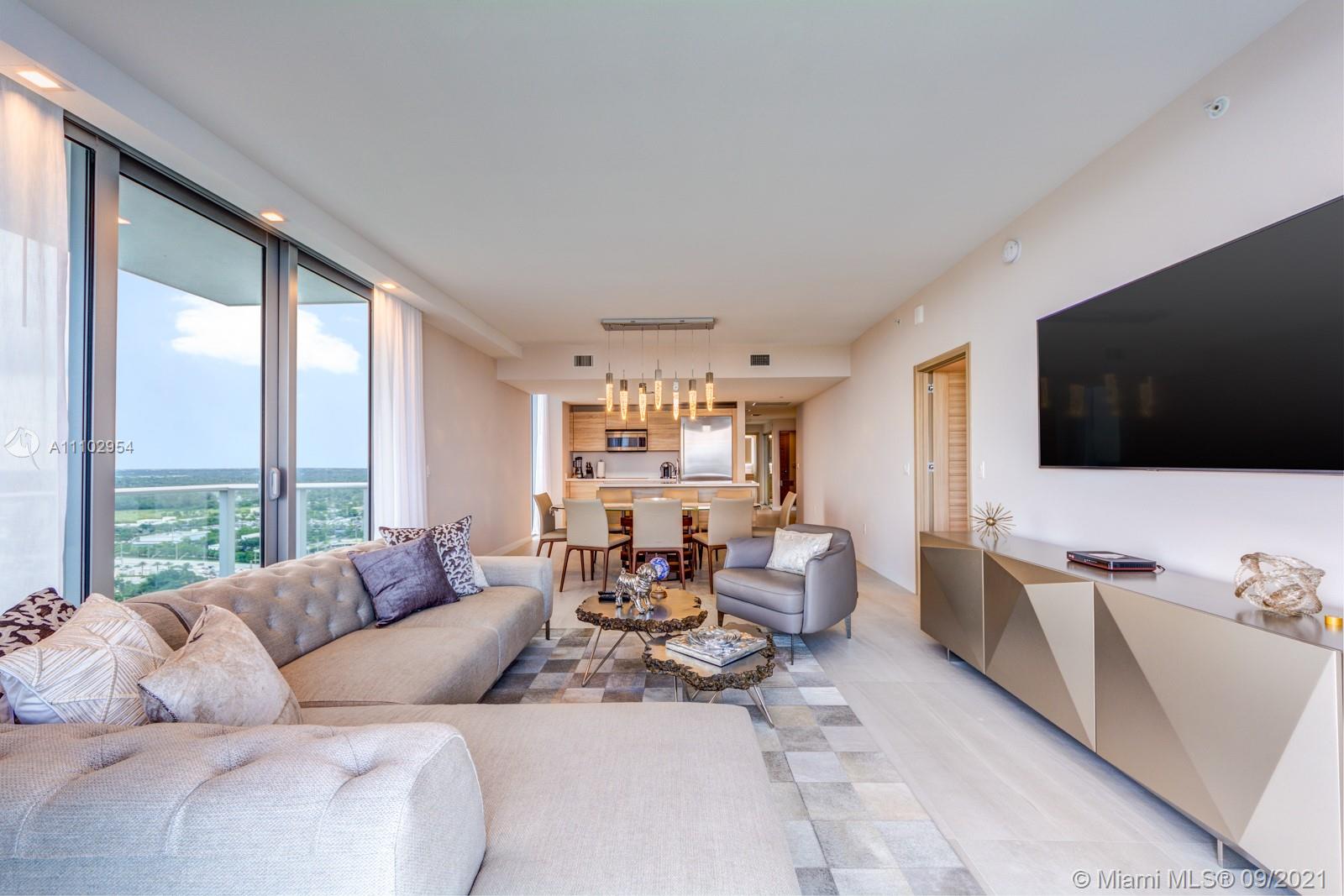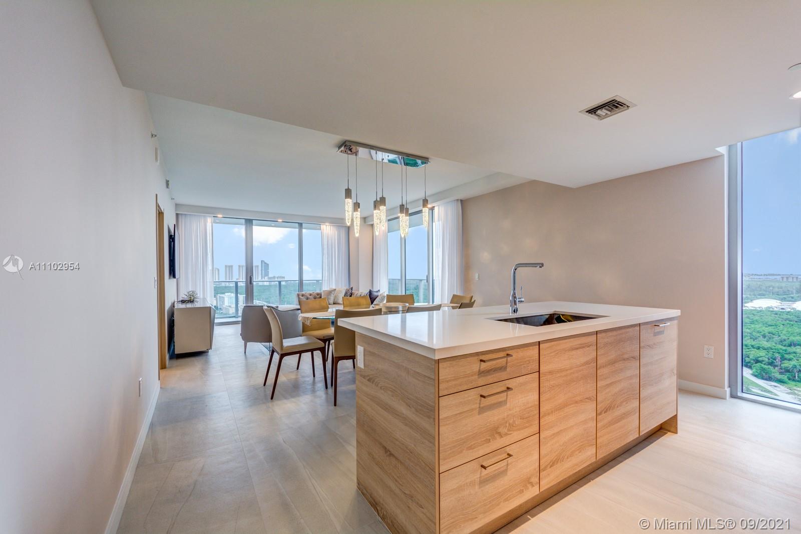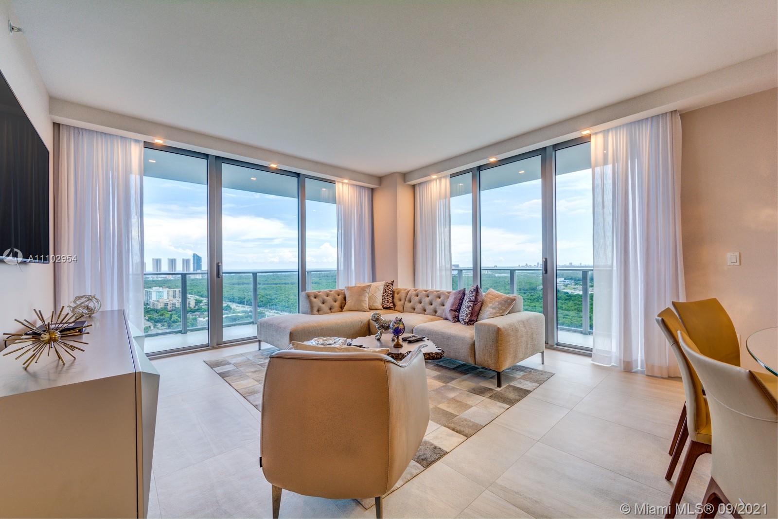 This fantastic large 3 beds / 3 baths + Den, 1.971 SqFt corner unit with the views of Oleta park, Ocean and Sunny Isles Skyline. This Condo has a private elevator entrance, it has over $100,000 in unique upgrades, porcelain floors / glass doors in showers, wood solid doors, motorized blackouts and windows treatments, closets and top of line appliances. A few minutes from Sunny Isles beaches, Aventura Mall, Bal Harbour Shops, Turnberry Golf Club and Spa, and others restaurants. 5 star amenities for all family: Aqua club: boating, paddle boards kayaking, scuba and fishing. Infinity pool with Daybeds and cabanas. Small private beach, spa, library and playground.