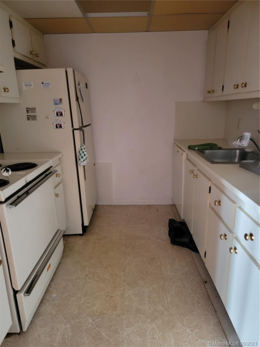 Spacious 1 bedroom 1.5 bath condo in 55+ community of Century Village. Parking right outside the entrance. Large open kitchen with plenty of cabinets and pantry. No neighbors in back. Private entrance conveniently located near the laundry room and elevator. Two storage closets, Probate Sale. Unit needs to be updated but has great potential. Friendly adult community with resort-like living Clubhouse, movies, fitness center, transportation, free golf, pharmacy, cafe, medical center, 24 hr security patrol, marketplace with hair salon, and 24 hr emergency nurses.