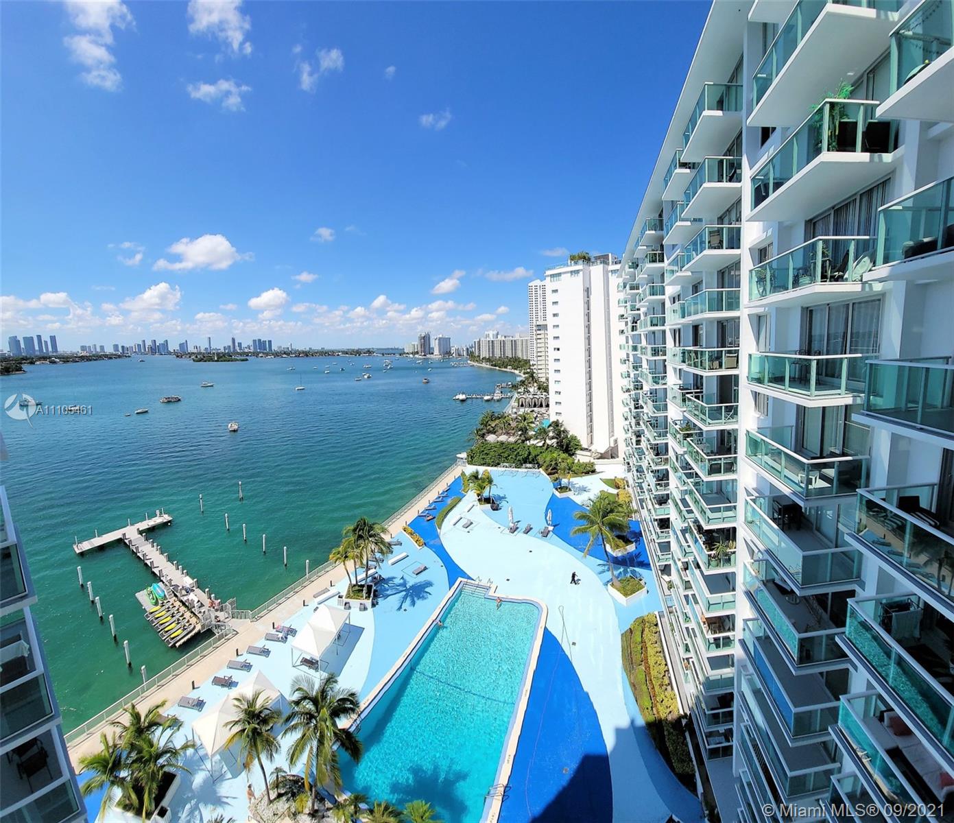 Stunning and just renovated Bayfront 1/1, view of wide bay intracoastal waterway, Miami skyline and sunsets from large glass balcony. Renovated euro design kitchen with white granite counter and full granite backsplash, new appliances, renovated bathroom with eurodesign cabinet, tiled floor and kohler tub doors. Vacant and available for immediate move in. Mirador 1000 with concierge services, valet, bayfront swimming pool and hot tub, bbq facilities on the bay. Across the street from Whole Foods market, Starbucks and the best that South Beach has to offer.