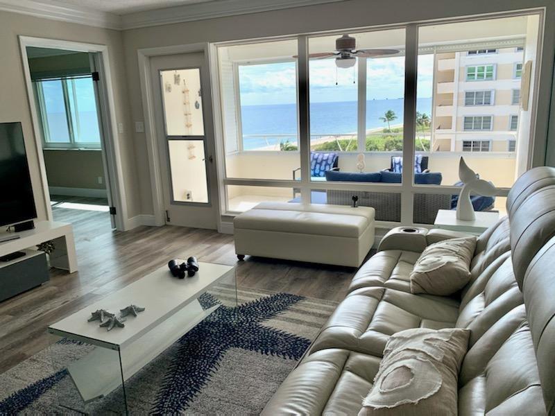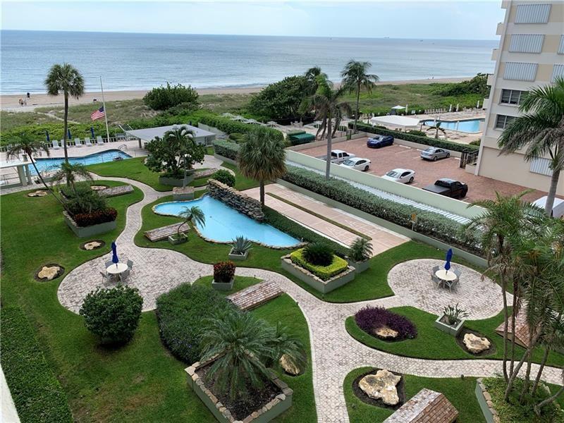 Contemporary, light, bright and open 7th floor unit with breathtaking SE wide ocean, garden & pool views! Fully furnished, turn key! Enjoy ocean view from every room, large private balcony, electric hurricane shutters, impact window with electric zebra blind in master, new flooring throughout entire unit, new ss appliances, crown molding, new doors & hardware and many more upgrades. Garage parking, extra large storage room. Manicured lush grounds, ocean front picnic and BBQ areas, deeded beach access & resort style pool. Enjoy this beach-side paradise minutes from the charming town center of Lauderdale By The Sea.