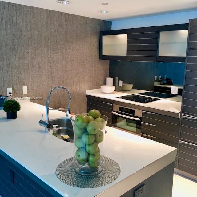 Expansive views of Miami skyline and Biscayne Bay. 1 bedroom and 1.5 baths. Nice Italian style kitchen with high end appliances. This exclusive unit fully furnished with attention to detail, inside you'll find exquisite décor, gorgeous lamps, wall paper, marble floors and exquisite custom designer finishes. Building offers 24hr concierge, valet, gym, spa, two pools, and home to Zuma and Area 31 restaurants. Located in the heart of downtown. Additional storage closet in building.